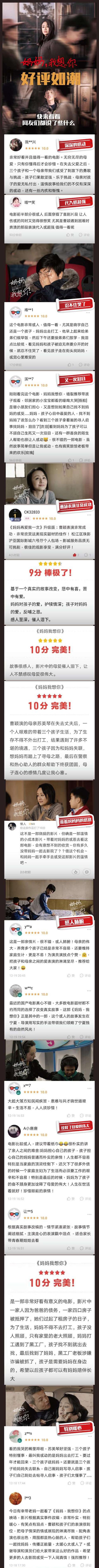 总之,这次疫情让我们经历了太多太多,我们每个人都有太多的难言和不易;这次疫情也许是我们跟家人呆得时间最长的一次,也许是我们跟家人分离时间最长的一次,这次疫情让我们深刻体会到了亲情的重要和家庭的温暖。 来吧,朋友,带着您的家人,带着您的朋友,带着您的同事,到影院要么好好哭一场,要么好好笑一场,让压抑的情感得到释放!电影《妈妈我想你》是一部近年来少有的泪点满满、感人肺腑的电影,7月25日起,影片将在北京、上海、天津、重庆、成都、长沙、武汉、郑州,以及江苏、浙江、广东、山东、宁夏点映,8月1日起全国上映。