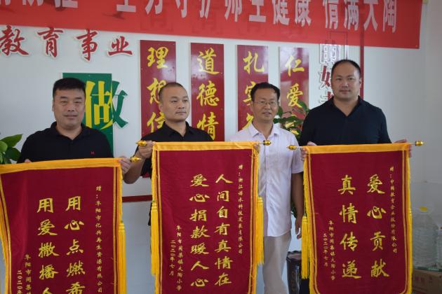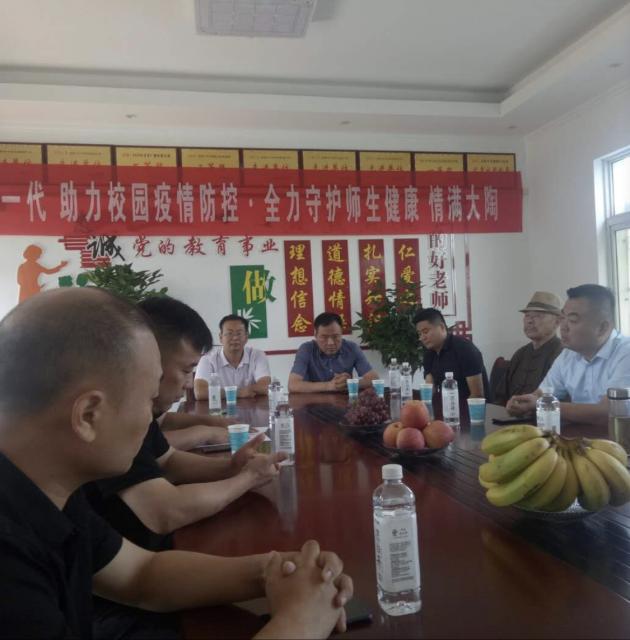 2020年7月20日上午,中国教育企业股份有限公司副总经理曹峰、浙江诺水科技发展有限公司安徽区经理刘晓林、阜阳市亿兴再生资源有限公司总经理陶化涛等一行专程来到阜阳市闻集大陶小学,向该校免费捐赠智慧校园人脸识别、智能测温设备及快速智能饮水管理记录系统,助力该校新冠肺炎疫情防控工作,保障校园用水安全。学校党支部书记刘校长、徐校长等代表学校接受捐赠,并向有关企业的爱心捐赠表示感谢。
