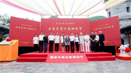 晒经节的由来 2020年7月26日是农历六月初六。史料记载,六月初六古称天贶节,民间又称“晒经日”。传说玄奘西天取经,不慎将经书落入水中,急忙捞起晒干,才得以完好带回。后来寺庵僧尼于每年六月初六都会集齐信众,将收藏的经卷拿出来翻晒,以利经卷保存,另有“晒经度众生,功德大无穷”之意。 为了传承优秀传统文化,打造云居寺文化品牌活动,讲好房山故事,延续云居寺古老的晒经传统,2020年7月26日,以“展文物展文化展精神”为主题的云居寺第四届晒经节正式拉开帷幕。 “展文物 展文化 展精神” ——云居寺举办第四届晒经节 北京石刻艺术博物馆研究员、古建筑专家、辽金元史专家、石刻考古专家吴梦麟,房山区大石窝镇党委书记曹燕杰、房山区财政局副局长杨扬、房山区文化和旅游局副局长谭瑾、房山云居寺文物管理处主任王得军等领导嘉宾出席活动开幕式。