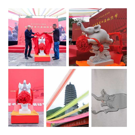 活动中,“展”“创”“寻”三大亮点贯穿始终: 展示“云晒经”。 为加强对云居寺珍贵文物的保护与利用,云居寺三敬园中特别展出了平时珍藏在文物库房中的石经、纸经、木经板等诸多文物经卷,包括石经残石、明《南藏》、明《北藏》、舌血华严经、海绘图、贝叶经、《宝藏》拓片等,还首次展出了房山石经线刻画、明代纸经的经面织锦,展现清代刻经采石场景的《大石窝伐石图》,描绘清代云居寺风光的《房山云居寺图》。游客可以近距离阅览,一饱眼福,亲身感受到云居寺文化的广博与厚重。同时云居寺创新思路,联合海南南山寺、河北响堂山、缅甸仰光舍利寺等国内外知名寺院和机构以“云晒经”形式共同展出珍贵文物。让更多人关注云居古寺,了解云居寺的深厚历史和文化价值,唤起更多人的文物保护意识。 二、首创“吉祥物”。 本届晒经节正式推出晒经节官方吉祥物“小飞象”。创作元素来源于云居寺唐开元十年(公元722年)小塔上雕刻的瑞兽“小飞象”,寓意为吉祥和自由。其形象蕴含了文物的艺术性和鲜活性,浓缩了千年云居文化的精髓。此次云居寺首次推出服装、扇子、丝巾等晒经节文创产品,让文物“开口说话”,让优秀的云居文化元素灵活融入当代人的日常生活中,更是对云居文化产业发展的全新尝试和有益探索。