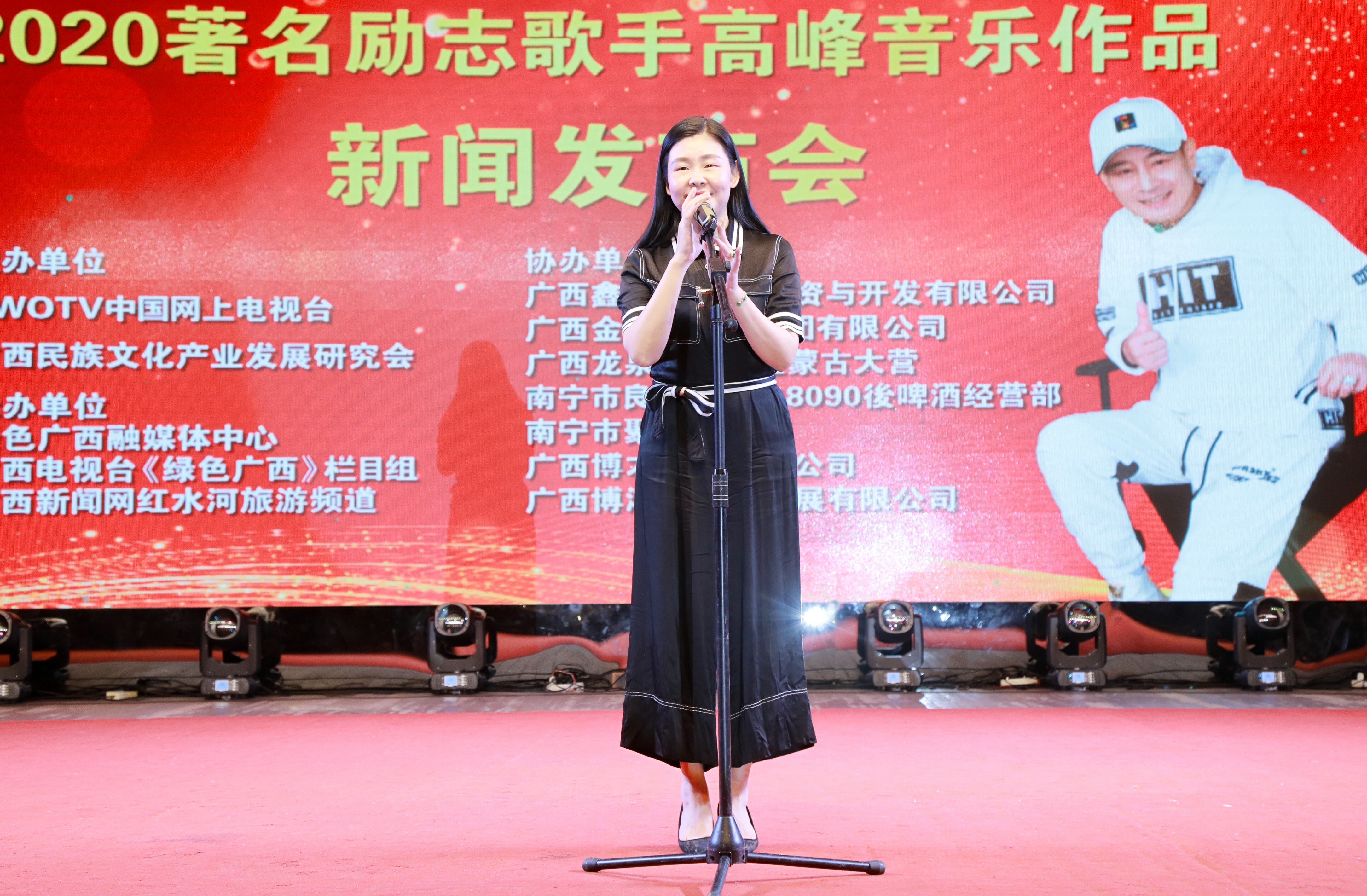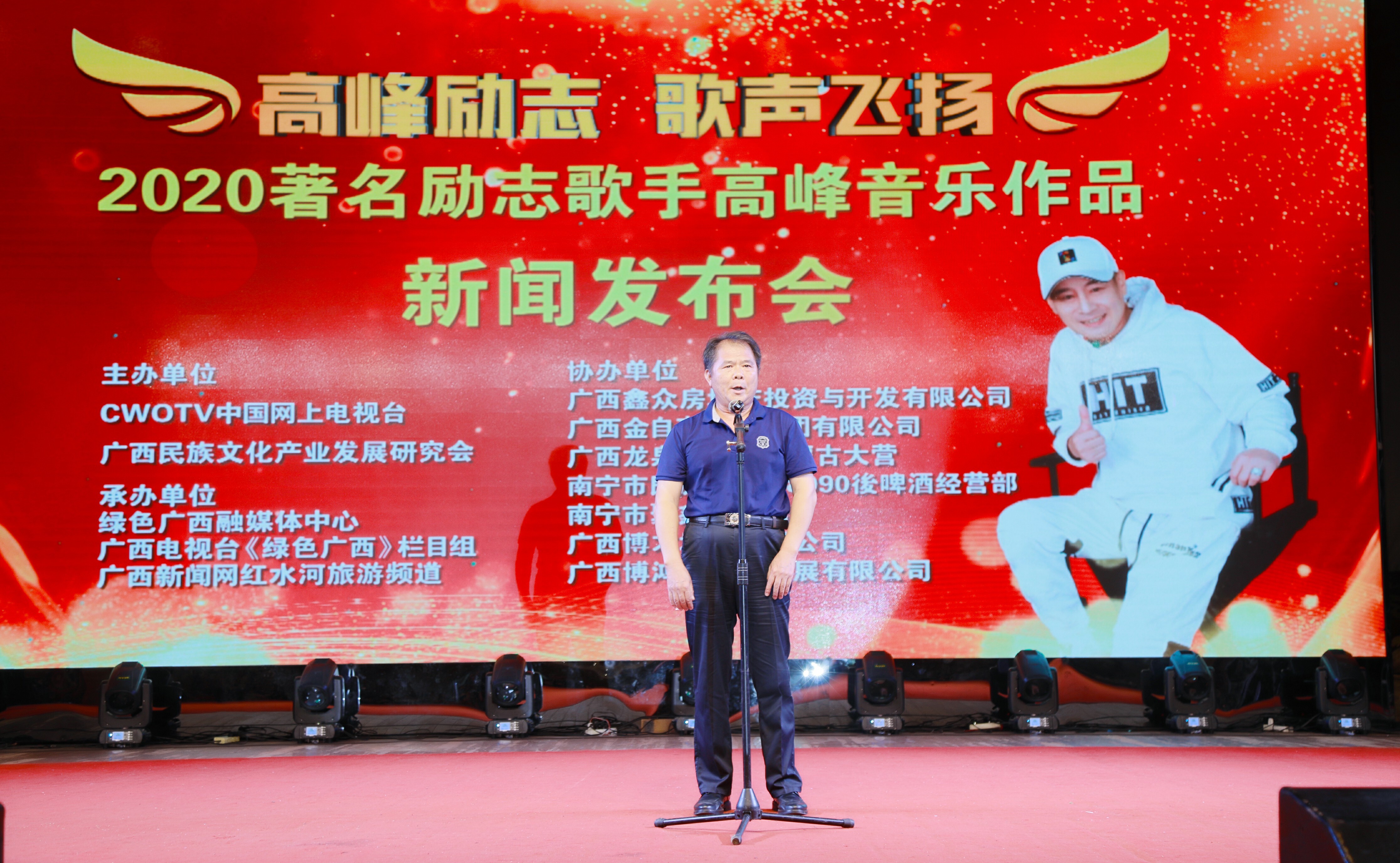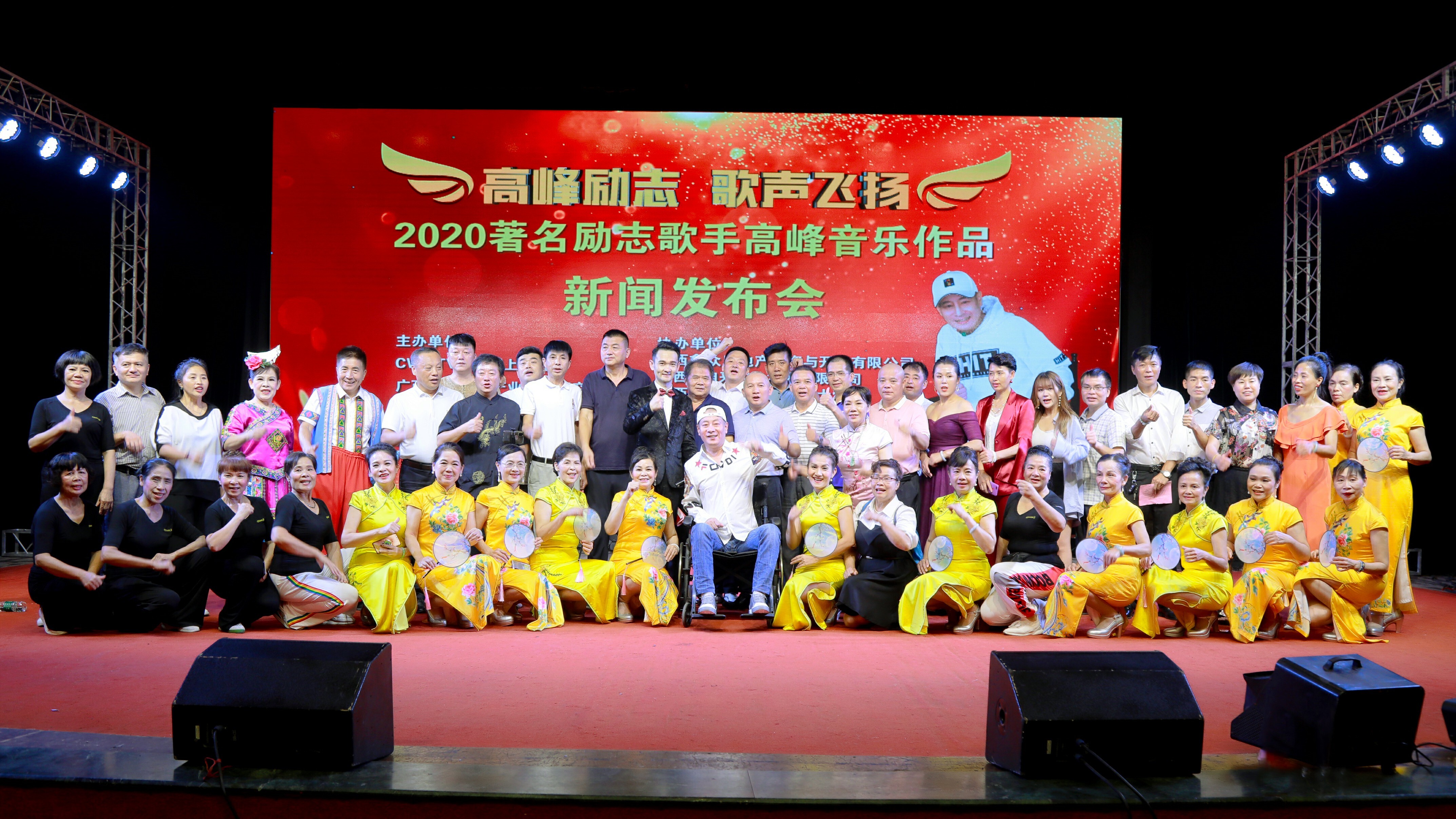 著名励志歌手高峰音乐作品新闻发布会于7月26日晚,在广西南宁市明园新都酒店大礼堂圆满举行。发布会以“高峰励志 歌声飞扬”为主题,高峰亲临现场并携手中国社区春晚组委会及红水河文化艺术团等单位为观众献上精彩的表演。四海宾朋聚一堂,载歌载舞迎新歌。