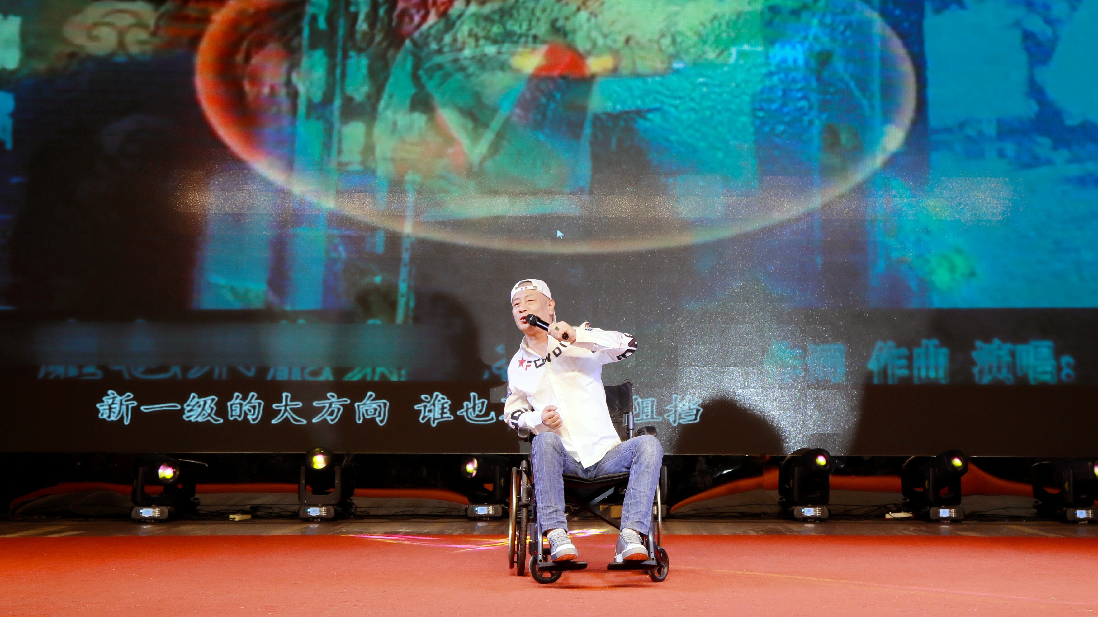 发布会由央视著名主持人焦通主持,在中国社区春晚组委会艺术团带来的壮族原生态歌舞《敬酒歌》中拉开了序幕,热情洋溢的氛围,点燃了在场每一位观众的激情。 广西残疾人福利基金会副理事长韦锦程先生致辞,他说道,1993年,高峰为救一位过马路的盲童发生车祸,导致下肢残疾。纵使如此,他还是充分发挥他的正能量以及对社会、对人类的担当,是我们非常优秀且特殊的朋友。现在高峰老师已经融入到我们广西残疾人的队伍里来了,是我们广西337.5万残疾人的榜样。 韦锦程先生号召在座的各位领导、社会人士,能通过这个平台了解残疾人,鼓舞残疾人,关心残疾人,关注残疾人事业。