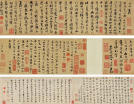 董源作为南唐“宫苑使”,因善表现江南景色,故深得后主李煜的宠爱,特地赐于他“澄心堂纸”、“李廷珪墨”作画。由于,“纸精墨良”促使他灵感启发,乘兴挥洒,作品更加入神出化。作品凡长卷阔帧者均为绢本。而短卷直幅,如《庐山图》、《夏山林朩图》、《溪山风雨图》、《烟岚重溪图》等表现江南风景的作品,都是釆用“澄心堂纸”、“李廷珪墨”绘制而成,且均为传世神品。文物界有个共识:收文物千件万件,不如藏顶级一件。自古以来,只要有名品露面,即会引起学界、藏界的高度重视,2017年东京香港秋拍,一件尺幅相同王蒙(仿北苑夏山图局部)《泉声松韵图》以1.51亿港币落槌;2018年佳士得26X50厘米苏轼《木石图》以4.11213亿元成交;2019年中国嘉德秋拍一件不到2平尺的赵孟䫍早年书法《致郭右之帖卷》以2.67375亿元成交。相比西画达芬奇画作《救世主》4.5美元成交价格,中国传世古书画价值还处低位。在民国时期张大千就曾用500两黄金、20幅明代字画换回一件董源名迹收入囊中。现为画书界撑眼40多载的江南巨撑陆镜清先生有言:要成为顶级藏家,手上必须要有顶级藏品。传世古字画一纵即失,失之交臂,可能就是一生一世,再难拥有。现在藏家意识已遂向成熟。附图:《泉声松韵图》、《致郭右之帖卷》。