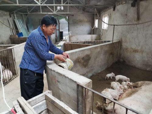 潘国太自2018年开始养猪以来,经过两年多的艰苦努力,猪圈逐步扩建至600平方米,生猪存栏已发展到120头,可谓是从无到有,基本实现脱贫,即将走上致富的道路。“过几天卖掉一批猪,又可以有一笔收入,我打算用这钱把猪场再扩建一下”,他充满干劲,始终信心满满,对未来有着自己的规划。 回顾自己创业脱贫的经历,他感慨万千。在养猪以前,自己多以外出四处打工为主,以在家务农耕作为辅,基本无稳定工作及收入来源,且打工的时间虽长,家里却一直都没有什么存款。2013年下半年他在工地干活期间发生意外,住院数月,在家休养长达一年,更是加重了家庭负担,其他家庭成员基本无收入能力,入不敷出,导致家庭经济困难,只能勉强维持生计。2014年又赶上孩子考上大学,学费和生活的双重压力压的老潘喘不过气来,这时,国家脱贫攻坚的好政策到了,将潘国太一家定为建档立卡贫困户,在孩子上学问题上和生活保障上提供了大力支持,帮助潘国太渡过了难关。 “自被评定为贫困户以来,得到了党和国家政府的政策扶贫帮助,但作为基层贫困群众,更应积极响应国家号召,自主创业,努力脱贫。”一辈子不服软的潘国太思来想去打算创业,自谋出路,甩掉贫困的“帽子”。在充分的调研和考虑后,2017年潘国太形成了养猪的初步构想并于2018年正式付诸行动,开启养猪的自主创业之路。 俗话说,万事开头难。说起来简单,但真正做起来,遇到的困难和问题是一个接着一个,资金、经验和技术样样缺,一切都是从零开始。2018年上半年,在做通家人的思想工作并获得支持的情况下,夫妻俩向亲朋好友借钱修建了300平方米的猪舍,买了8头母猪。可是令他没想到的是,养猪第一年就遇上了价格低谷期,加上规模小,前期投入大,第一年就是负收入的状况,但他并没有气馁,也没有因此而放弃创业,而是调整心态,稳扎稳打,积极参加县里养殖户培训,观摩规范化养殖场,在实践中学习并积累经验,尽力减少成本和损失。功夫不负有心人,在夫妻俩的细心照料下,母猪顺利生产了几批生猪,且成活率也在提升,再加上猪肉的价格逐渐回升,育肥出栏后终于有了净利润。在之后的日子里,夫妻俩一边还债一边继续扩大规模,每天亲自喂食、磨饲料、打扫猪舍,丝毫不懈怠,养猪的技术越来越专业,创业也步入了正轨。