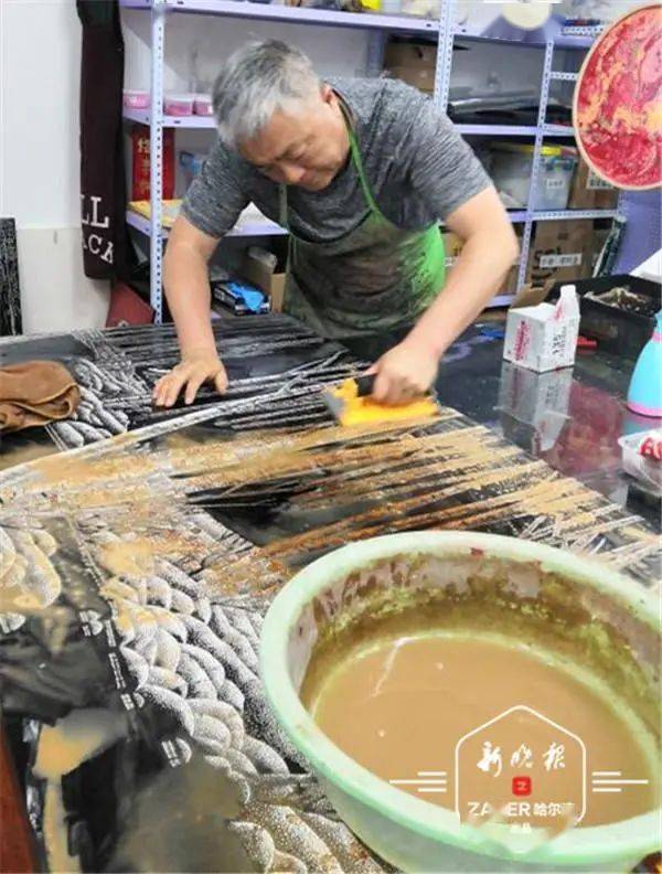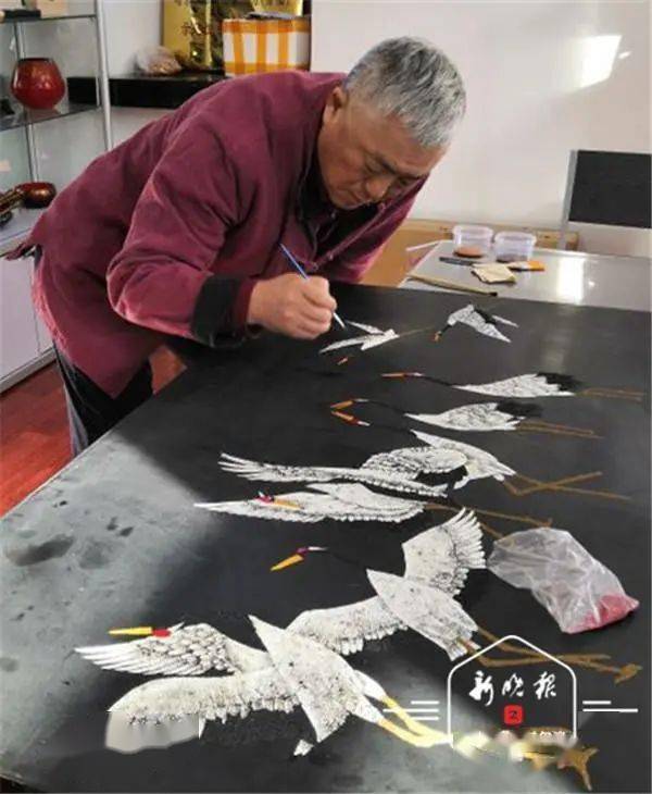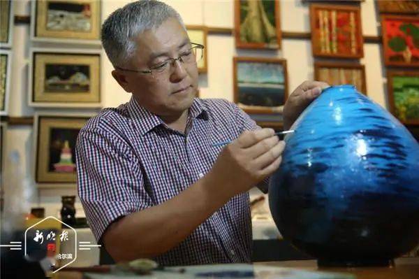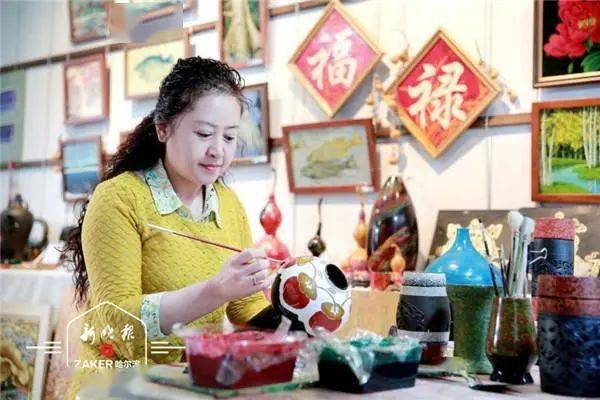 白艳萍说,拜师后,他们从师傅那里学到了金漆镶嵌技艺绝活,镶嵌漆画,镶嵌蛋壳、贝壳,钻石、玛瑙、玉石、翡翠。师兄妹俩还结合自己的领悟与实践,凭借对漆艺天然的敏感与多年的坚守,将精湛的技艺与北方自然风光相结合,形成创作无尽的灵感,融入大漆艺术中。 一对师兄妹 将大漆故事研磨进骨子里