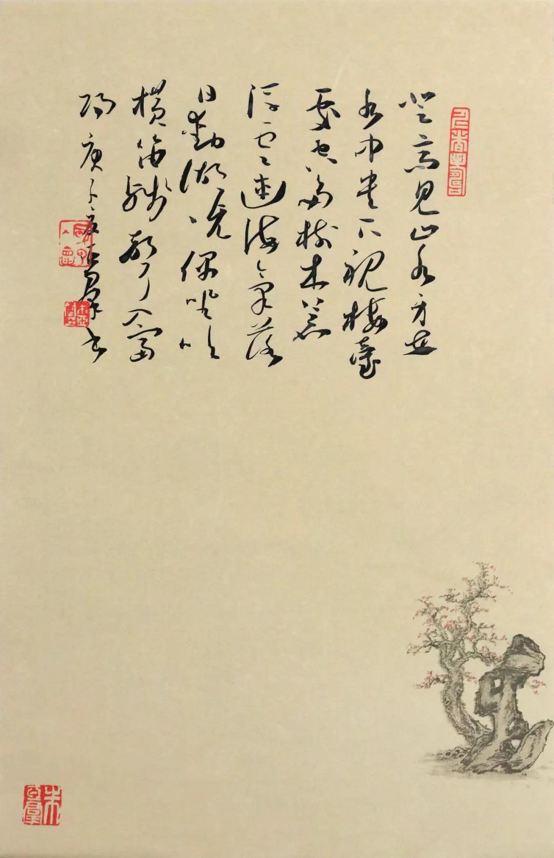 释文: 杜小山诗《寒食》 寒夜客来茶当酒,竹炉汤沸火初红。 寻常一样窗前月,才有梅花便不同。 尺寸:46cm×69cm