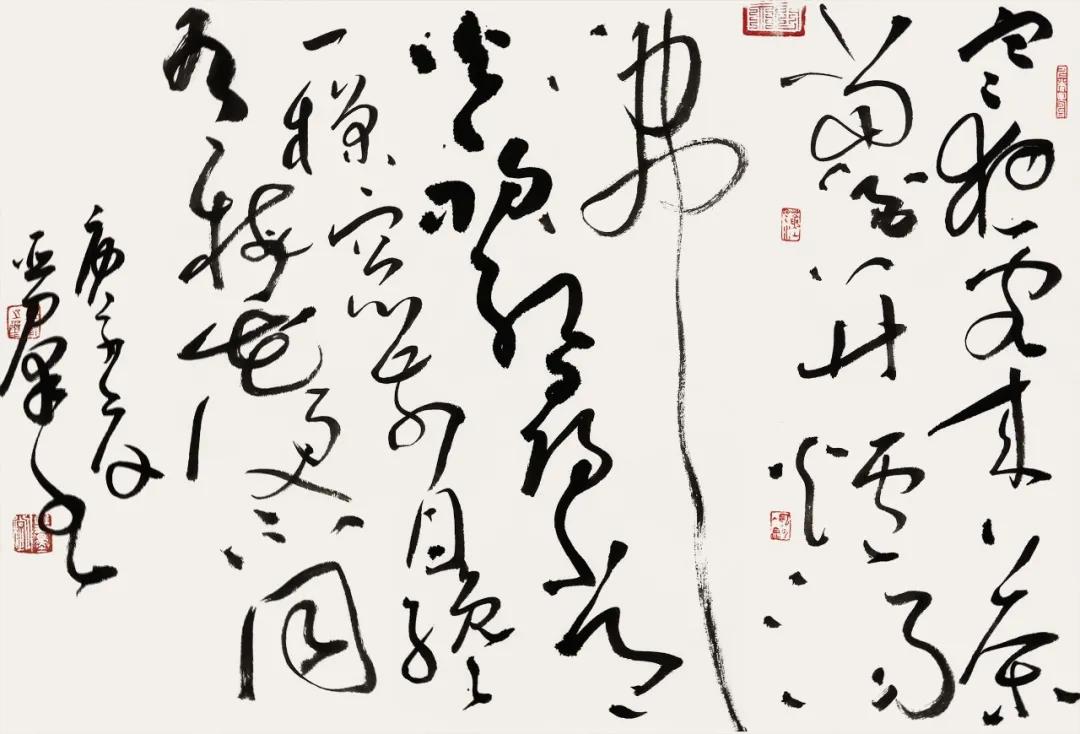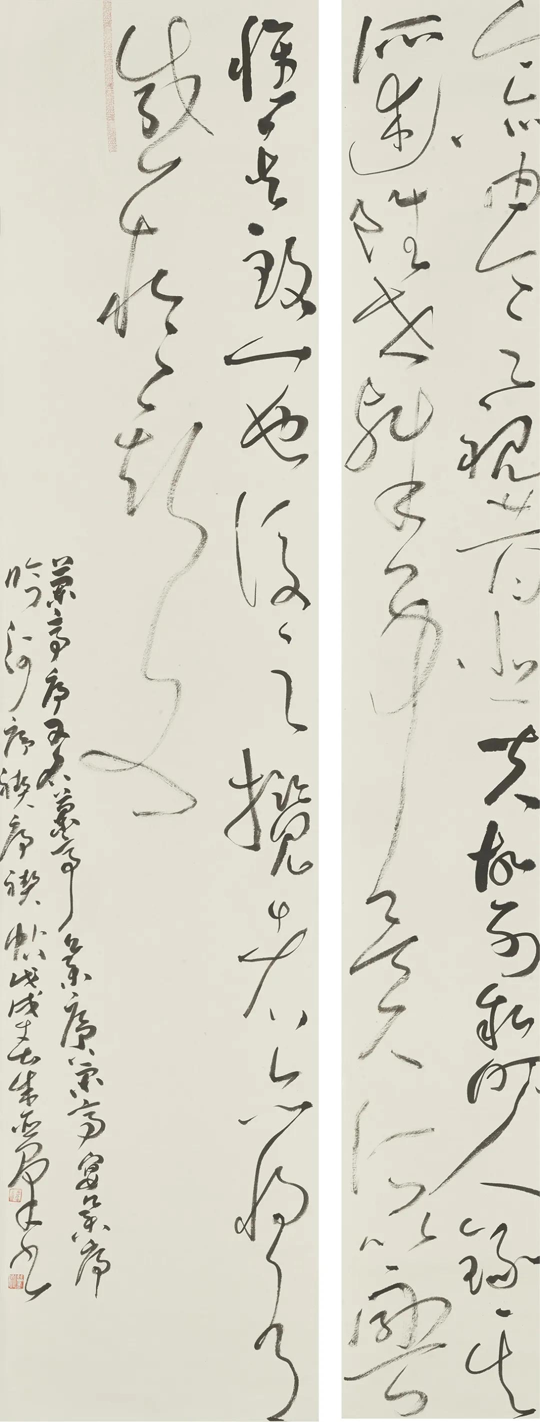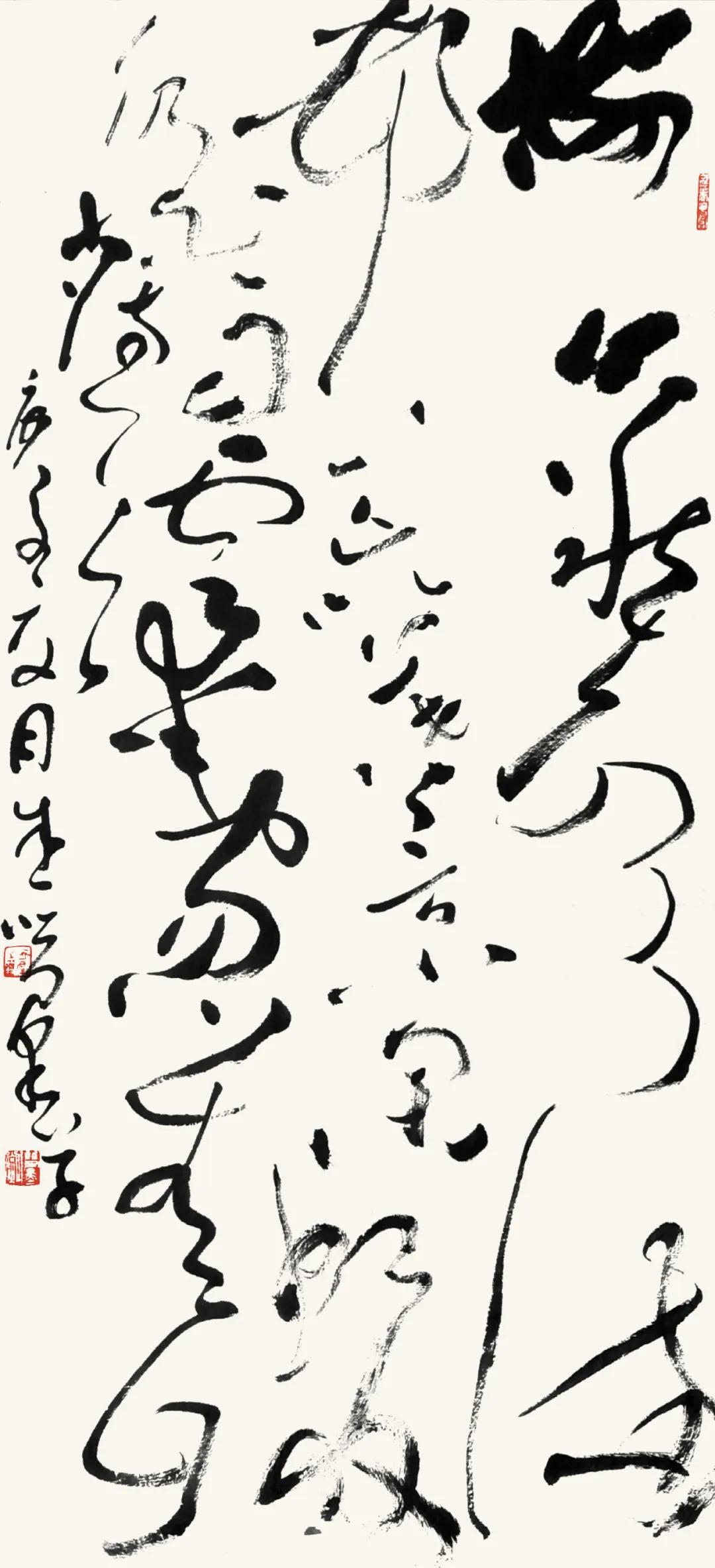 释文: 元好问《山居杂诗》 树合秋声满,村荒暮景闲。 虹收仍白雨,云动忽青山。 尺寸:100cm×55cm