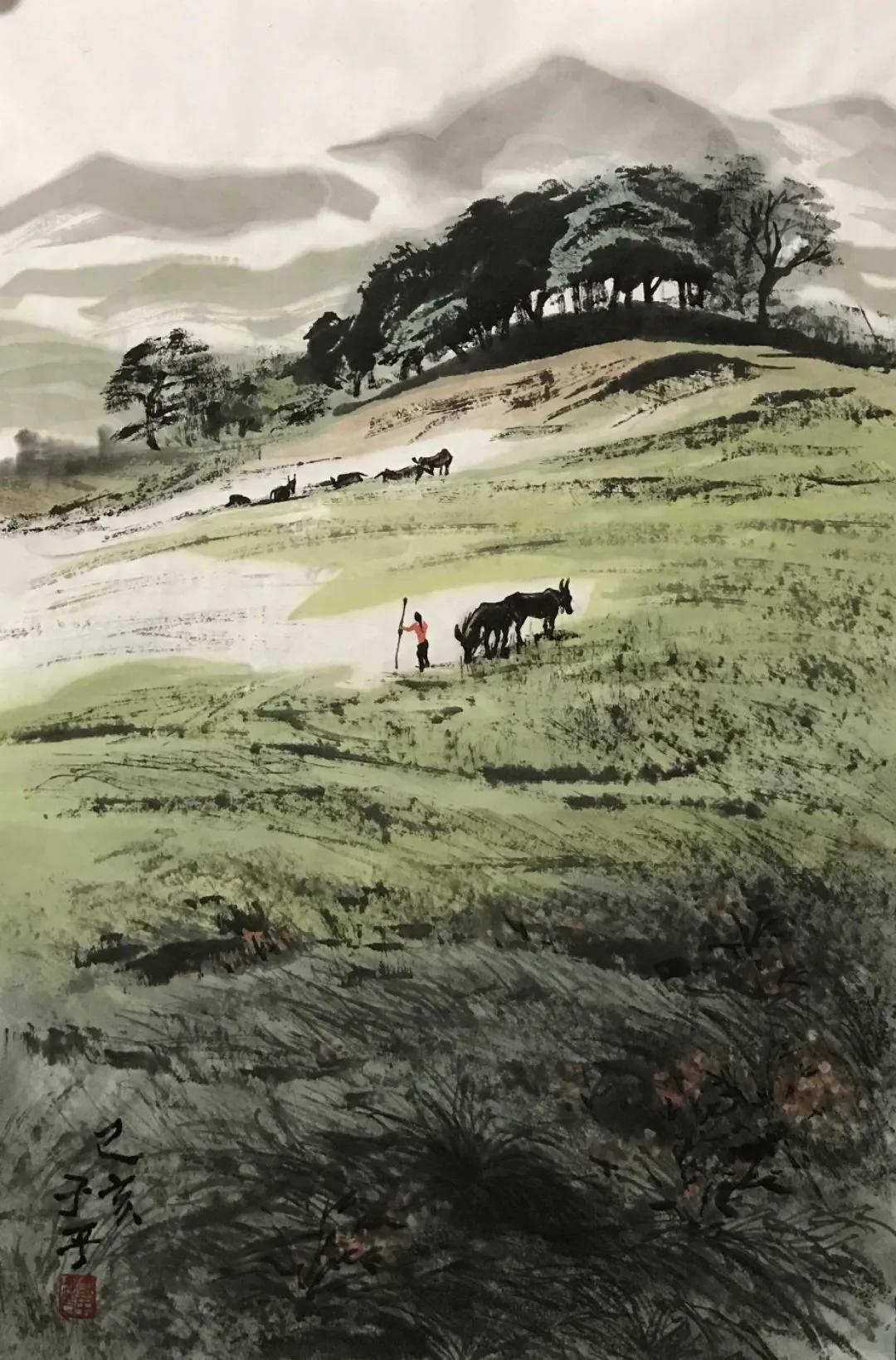 作者:戴顺智/尺寸:68x68cm 作者:邓子平/名称:高原牧归尺寸:68x46cm