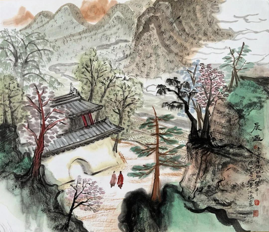 作者:梅启林 / 名称:日映岚光轻锁翠 / 尺寸:136cmx68cm