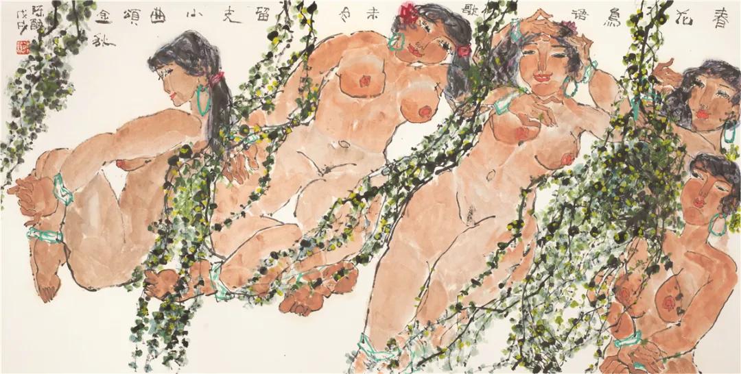 作者:陈醉 / 名称:春花鸟语/尺寸:68x138cm