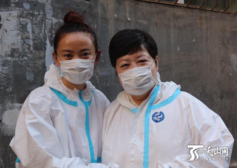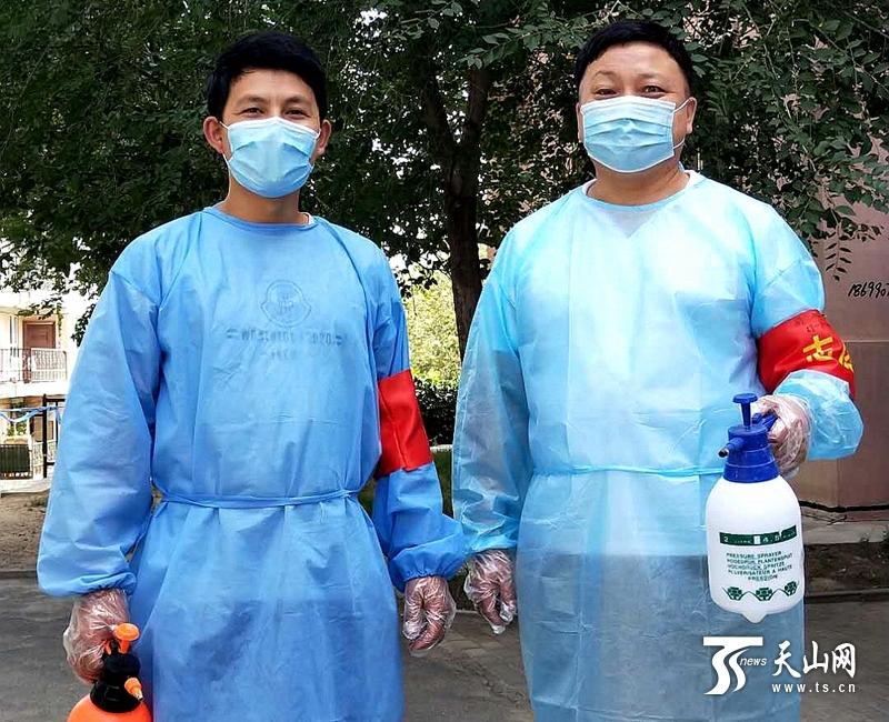严小华(右)、李婷母女 “F27”中的哥俩组合 “F27”志愿者服务队是负责乌鲁木齐市沙依巴克区骑马山社区怡和山庄27号楼的志愿者队伍。怡和山庄27号楼有7个单元,目前居住71户、203位居民。疫情发生后,27号楼的15位居民主动报名成为志愿者,为大家服务。 其中,白生江、马文斌做邻居多年,马文斌称呼年长的白生江“白哥”,白生江则叫他“小马”。哥俩尽心尽力为居民服务,赢得了居民的信任和称赞。“平日里邻居们真情相处,现在尽自己的力量为大家做点事,累并快乐着。”白生江说。