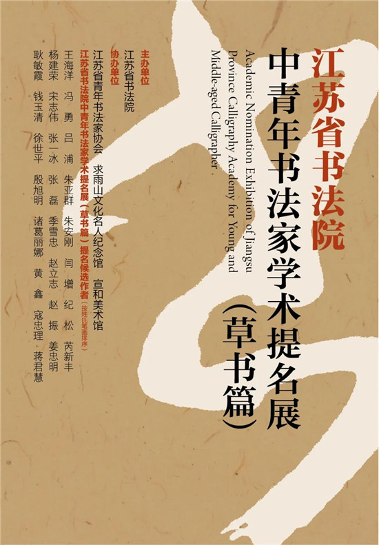 前 言 江苏是一块书法的热土,新中国成立70多年来,尤其是改革开放以来,江苏书法可谓“继接传统,开拓新局,快速发展”,涌现出了一批审美视野开阔、审美观念开明、创作思维活跃的中青年书法家。 “雨山问道”江苏省书法院中青年书法家学术提名展,是我院打造江苏省拔尖中青年书法家人才队伍的品牌展览之一。展览分为草书篇、行书篇、楷书篇、篆书篇、隶书篇、篆刻篇。作者年龄不超过55周岁,每体提名候选作者20-30人,经过省内外组成的评审委员会评审,评选出每体入展作者5人。六个篇章,最终入展作者30人。 学术提名展的展览分三个块面开展:第一块面是网络展,在我院微信公众号上对提名候选作者进行个人专题推介;第二块面是按照6个篇章6场展览的力度分别推进。组织每体入展作者到求雨山名人纪念馆“问道先贤”,观摩“金陵四老”书法真迹、馆藏精品,按书体篇章顺序,分别举办“雨山问道”江苏省书法院中青年书法家学术提名展,各书体5位入展作者对每件展览作品陈述创作感言,我院组织专家进行评议、指导。在此基础上,进行作品再创作。第三块面是大结局,在宣和美术馆举办“雨山问道”江苏省书法院中青年书法家学术提名展整体大展,出版展览作品集,举办学术研讨会,创意艺术品衍生品。 我们希望以本次学术提名展为契机,集中推出我省一批中青年书法拔尖人才和他们最新的创作成果,推动书法精品创作,促进江苏书法事业可持续发展,为推进“强富美高”新江苏的文艺繁荣作出我们的贡献。 江苏省书法院院长