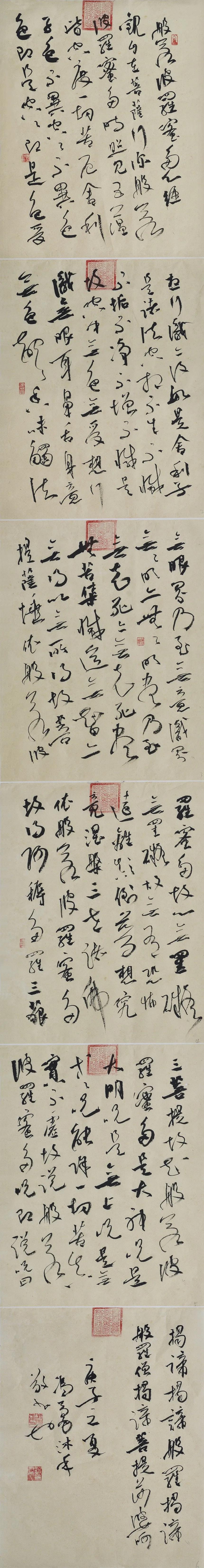 释文: 《般若波罗蜜多心经》 释文略 尺寸:40cm×270cm 来源:江苏省书法院 |