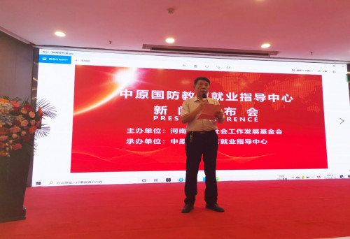 — — 中原国防教育就业指导中心揭幕仪式在郑顺利举行 8月23日上午9点,新华中州国际酒店5楼会议室里响起嘹亮的国歌,主持人用雄浑有力的声音宣布“中原国防教育就业指导中心项目启动仪式”正式开始。