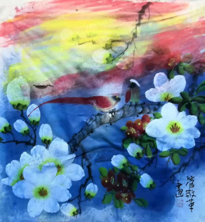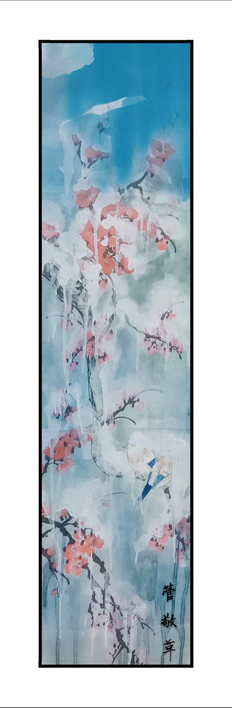 冰梅: 烟雨朦朦(冯帆)为管敬革冰梅画题诗 本是严冬独自开, 嫣红朵朵画里裁。 冰雪皆怕娇艳去, 雪堆冰砌琼宫埋。