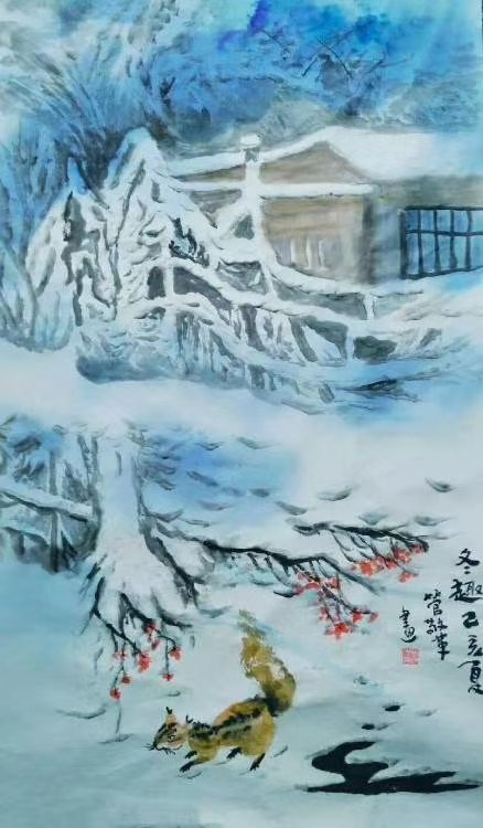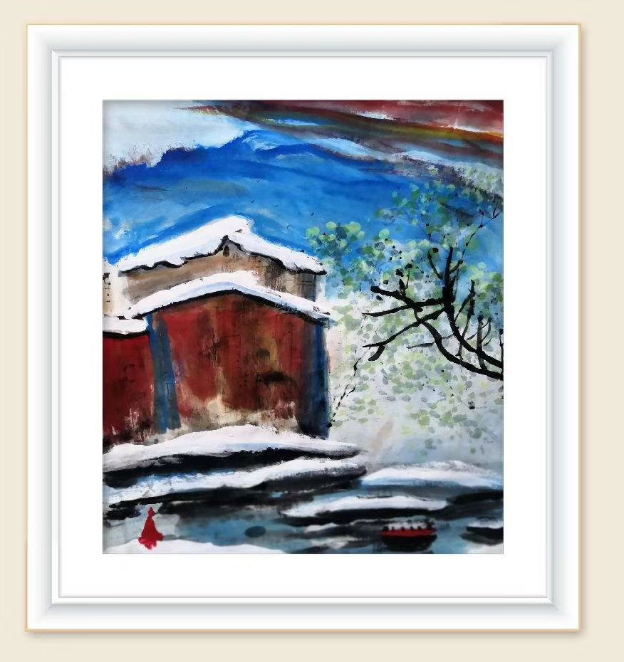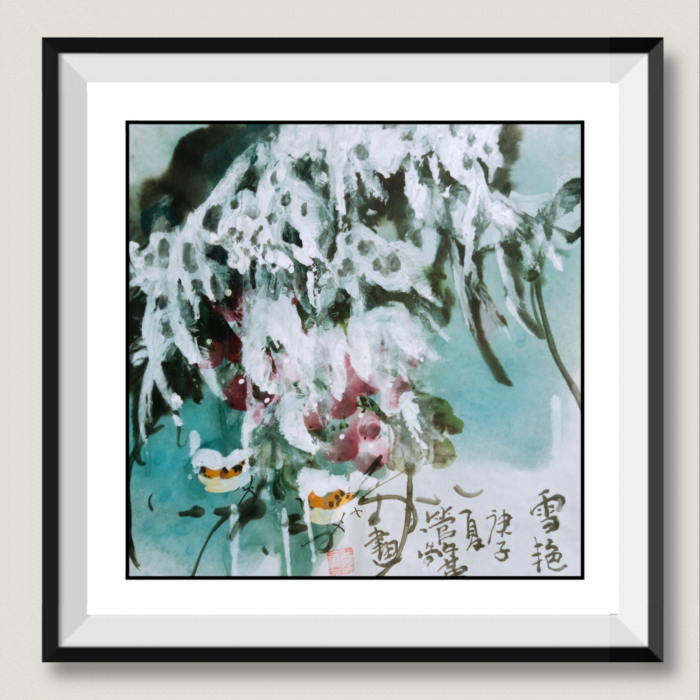 国礼画家管敬革冰梅画 ——扬州黄资源赋 2020.07.13 红梅雪中傲, 寒冷更怒放, 冰雪情更柔, 一望惊无暇!