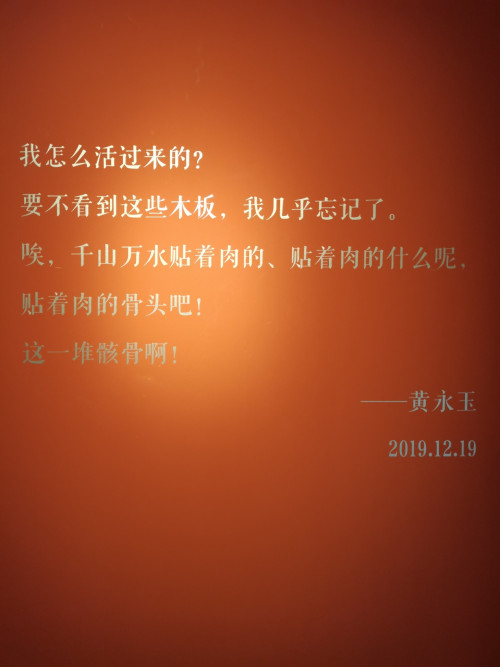 “历史骸骨”——原版木刻对照 “我怎么活过来的?要不看到这些木板,我几乎忘记了。唉,千山万水贴着肉的、贴着肉的什么呢,贴着肉的骨头吧!这一堆骸骨啊!” ——黄永玉 2019.12.19