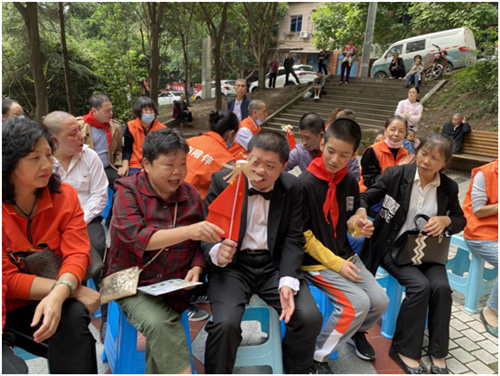 金秋送爽,在这花果飘香的季节里,迎来了祖国七十一华诞,为促进残障人士融入社会,增强对伟大祖国、对党和人民的热爱,进一步把爱国情感物化为具体行动,让残障人士获得感、幸福感和安全感,9月30日上午,重庆市万州区启智社会服务中心携手八角井社区居委会、中国雷锋报万州工作站志愿者、钟鼓楼街道办事处在钟鼓楼街道八角井社区开展了“欢度国庆 放飞梦想”主题活动。![]() 活动以十名心智障碍人士带来的歌曲《今天是你的生日》拉开序幕,精彩纷呈的节目让人目不暇接,舞蹈《骏马奔驰保边疆》诠释了中国人民的精神与内涵,爱心志愿者艺海飘雪老师以一首小提琴独奏《我爱你,我的祖国》让观众眼前一亮,残障人士代表向波为大家表演了一首《军中绿花》,他用这首歌触动了观众的每一根神经,爱心志愿者以优美动听的唱腔,丰富多彩的造型,栩栩如生的人物形象为大家带来了京剧舞蹈表演《卖水》将活动氛围推向高潮,由爱心志愿者带来的《当兵的人》使现场掌声、欢呼声、喝彩声此起彼伏,一浪高过一浪,击鼓传花、戴帽子、传红旗游戏互动、舞蹈《又见北风吹》、《心上的罗加》活动推向一阵又一阵的高潮,最后,残障人士及爱心志愿者和全场观众一起高唱《我和我的祖国》,在一片祥和、热烈、欢快的氛围中,“欢度国庆 放飞梦想”圆满落下帷幕! ![]() 整场活动歌舞交融,高潮迭起,残障人士和爱心志愿者用自己特有的方式表达了对伟大祖国的深情祝福和由衷赞美,展示了启智社会服务中心学员斗志昂扬、奋发有为、蓬勃向上的良好风貌。通过让残障人士进行节目表演的形式进一步让他们融入社会,呼唤更多残障人士走出家门融入社会,同时丰富残障人士的精神世界,引导积极向上的生活态度,以游戏活动的形式使残障人士自强自立,走出自我封闭,也能使更多的人、社会了解和关爱残障人士。 ![]() ![]() ![]() 作者:李子成、周秋月 |