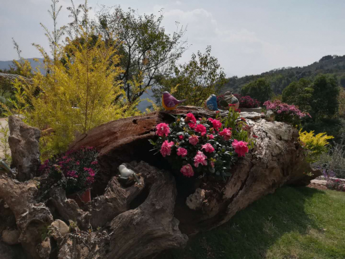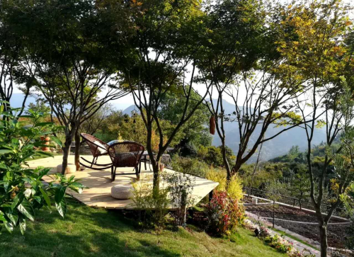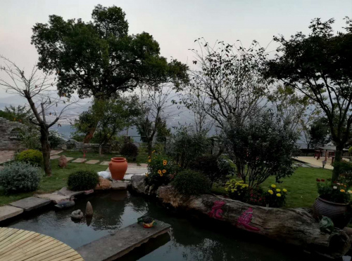 图片:山溪进入庭院,须臾安静了下来 整个假期,外甥女小风都在她精心设计的“作品”里忙碌。她时而要陪同客人漫步花庭,不时帮助拍照留念,讲解一下山村古老的历史;她时而要提醒小孩子们玩耍中要慢点奔跑,在陡坡旁、泳池边她还要走上前去搀扶一把、拦挡一下;她时而置身客人群体,倾听他们对服务、环境的点评和建议;她时而又去接待前来检查和指导工作的政府人员,汇报经营情况和提出发展思路;她时而急匆匆地奔到灶房,依尊食客的饮食要求,制定可口的一日三餐计划……我感觉她不像是民宿的营业者,彷佛绿色庭院里的女主人在热情地招呼来自四面八方的亲眷。忙碌归忙碌,外甥女的内心却充满着喜悦,花园民宿就是山村里的一道靓丽景观,在中秋、国庆双节的八天试营业中,得到来客的好评。因为网络对信息的传播力度,那几天,小风要不时地接听预约电话,无奈客房全部告罄,遗憾中也让她看到了未来发展的希望。 取名“花庭.东山上”的民宿占地三亩有余,是一块长条形、不规则、有坡度的几何地块,几幢高低错落的别墅被绿茵环抱,是醒目