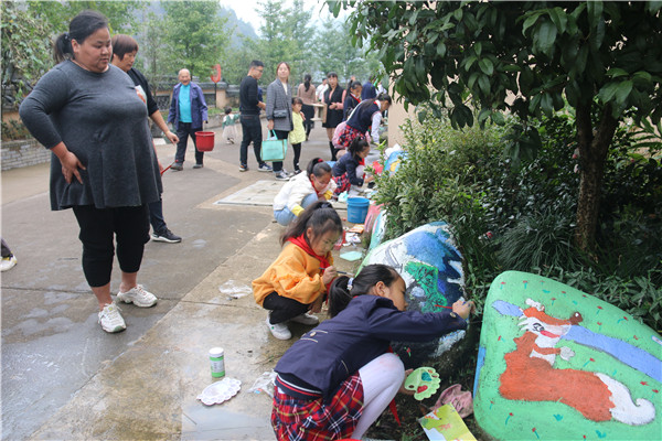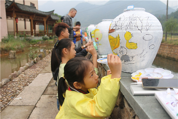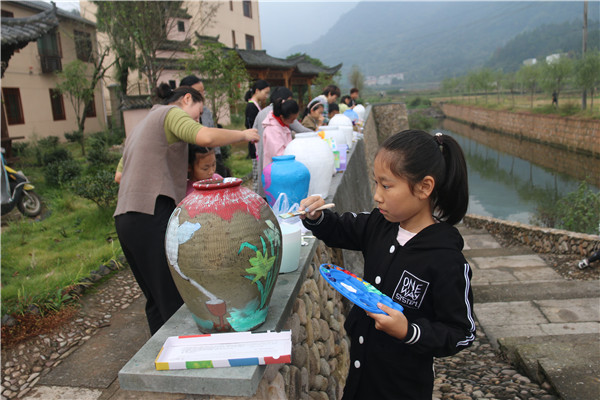 青蛙、小鸭、房子、花朵……参与比赛的儿童们充分发挥丰富而奇特的想象力,结合乡村本土材料竹子、木板、陶罐、瓦片、石头等元素,以彩色水笔画、油彩粉笔画、水粉国画、版装饰画、漫画等技艺,画出了率真自然,主题突出,富有儿童情趣,具有较强的表现力和感染力的作品,吸引了众多的游客前来观看,也使孩子们亲身体验绘画的乐趣,度过了一个快乐而又意义的周末。