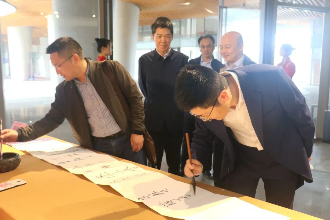 ↑环太湖艺术城董事长钱臣先生(右二)陪同领导嘉宾参观展览