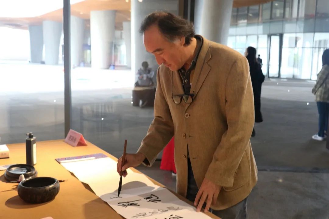 ↑参展艺术家吴锦川先生向环太湖艺术城展览馆捐赠作品,江苏环太湖文化艺术城集团有限公司副总经理杨志伟先生接受捐赠