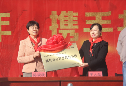 中华慈善总会会长助理陈砚秋女士致辞 随后涿鹿县人民政府副县长王大磊和中华慈善总会会长助理陈砚秋共同为本次捐赠活动揭牌。