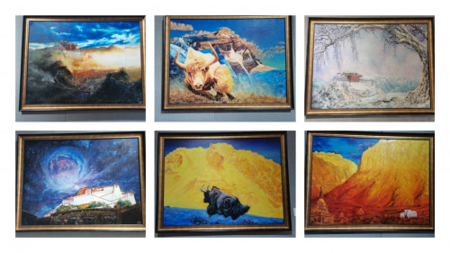 黄家林:1982年冬季,在机缘巧合下,我参加了由著名油画家裴庄欣先生在拉萨组织开办的为期仅有三个月的美术培训班,从次之后,我对油画产生极大的兴趣并开始了对油画艺术的自学之路,对藏语言先天的基础和天赋的优势作为翻译跟随裴庄欣老师到西藏日喀则、阿里等地采风写生,几个月下来,凭借跟随著名油画家裴庄欣先生等多名画家临摹大昭寺、古格王朝遗址壁画,与古人对话,成为了历史印记的记录者,由此便开始了我的油画绘画艺术生涯。记得:当时培训班有一百多人,到目前从事绘画艺术本行业的仅有三四个人,靠自己的勤奋、努力和坚持让我成为了在藏区其中的一名职业油画家,而裴庄欣先生也是我油画艺术生涯中最重要最感谢的恩师。