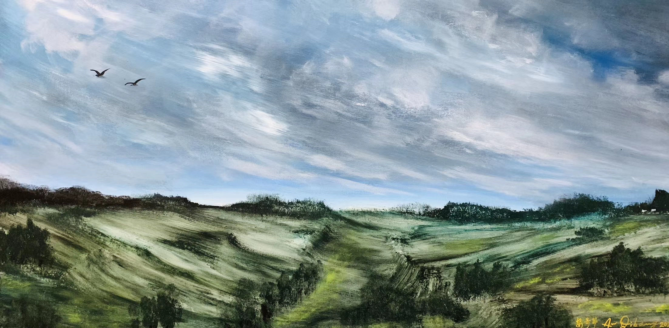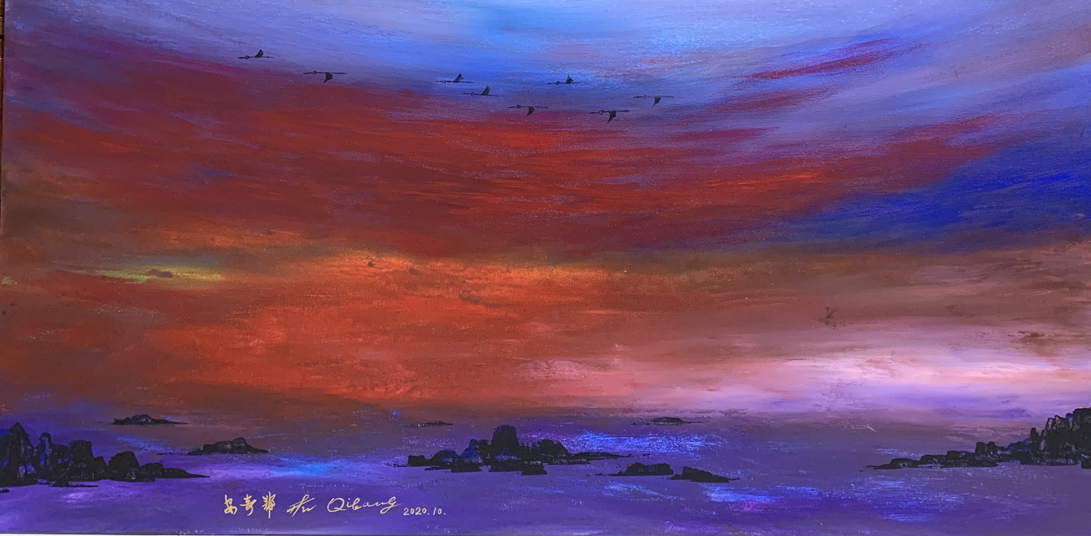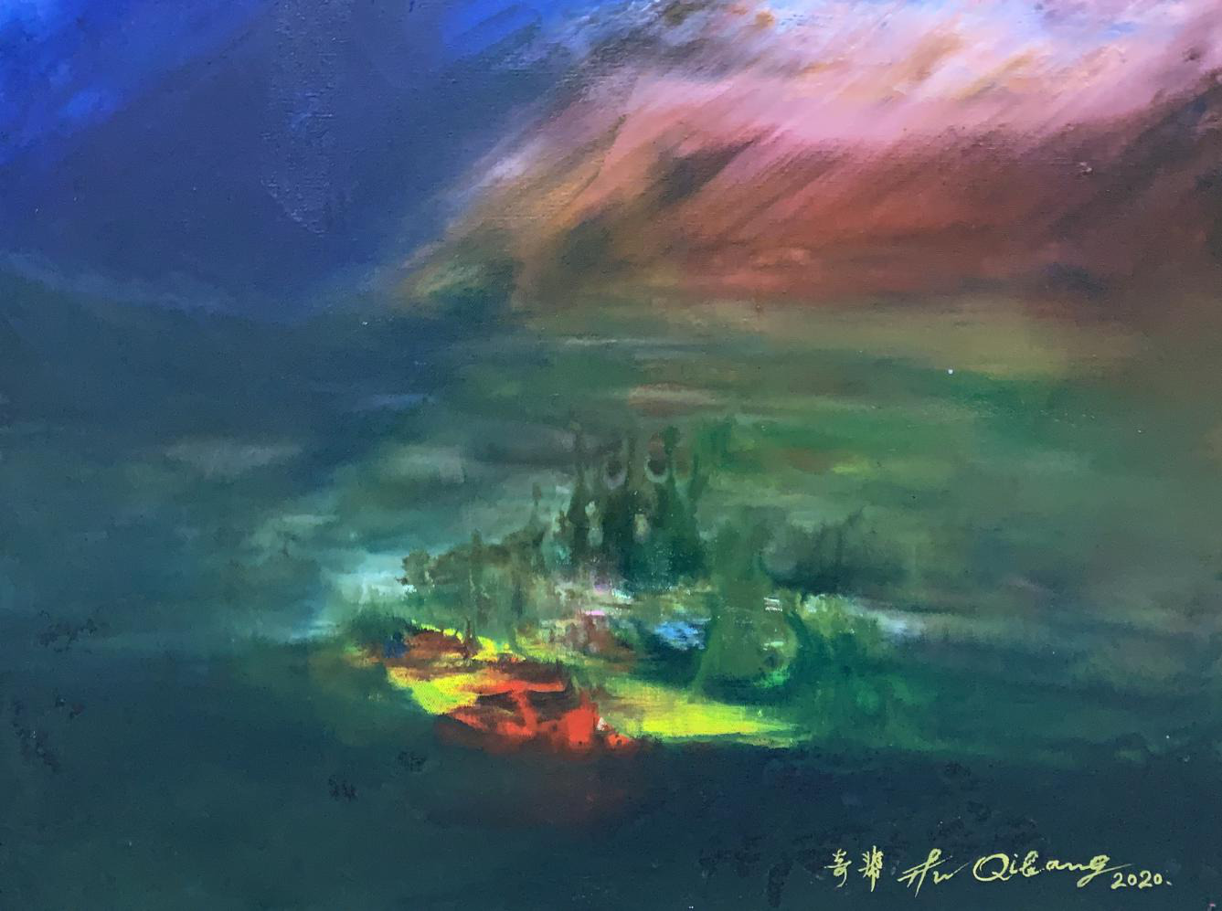 安奇帮作品赏析 诗意入画,气韵生动。当代中国油画的创作,无论是古典的、超写实的、抽象的、印象的等创作思路,事实上都是拾人牙慧的老路子,“中国油画”的新模式打不开,本土艺术家在国际艺术舞台上总会有被矮化的尴尬。安先生的意象油画,正是“中国的就是世界的”完美诠释!这些富有诗词意象的油画,可以让中国艺术家拥有自己的油画品牌,为中国艺术家群体在国际艺术舞台赢得被尊重的新口碑! 著名书画评论家 田园先生 2020年10月21日
