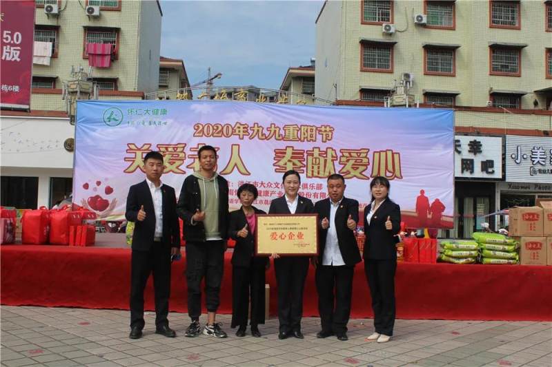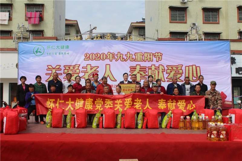 2020年10月25日,九九重阳节,为弘扬孝老爱亲的优良传统,怀仁大健康携手洪江市大众文化艺术俱乐部在安江古镇,举办了一场别开生面的“九九重阳节 献爱心送温暖”公益活动,洪江市大众文化艺术俱乐部为老人们献上了精彩纷呈的文艺节目,怀仁大健康为参与活动的安江镇村社30位70岁以上的建档立卡贫困老人赠送了保暖棉被、床上用品、精制大米与菜籽油等生活急需物资,不仅让老人们度过了一个快乐开心的节日,也为他们晚年的生活送去了实实在在的物质的关爱和温暖。