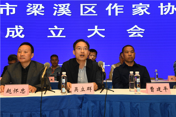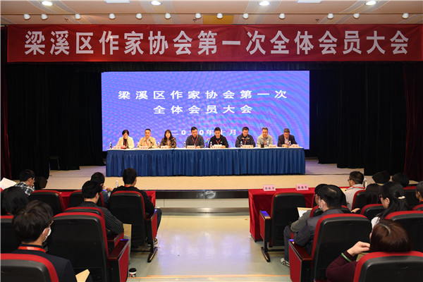 10月26日下午,无锡市梁溪区作家协会筹备、成立大会在古运河畔的梁溪区文化馆隆重举行。会议通过了梁溪区作家协会章程、选举产生理事22名、监事2名。在成立大会上,梁溪区文联负责人赵怀忠宣布梁溪区作协一届一次理事会选举结果,阮锡青当选梁溪区作协主席,杨红(女)、周小康、秦曙钟、章为民、刘晴(女)、徐龙当选副主席;经新当选主席提名,理事会表决通过,刘晴(女)为协会秘书长,连冬花(女)、章岁青、蒋钺为副秘书长。无锡市文联党组成员、副主席吴立群,无锡市作协主席曹建平为梁溪区作协揭牌;吴立群在讲话中,对梁溪区作协的成立表示热烈祝贺并寄予厚望,要求梁溪区作协在新起点上有新作为、有大作为,在出精品、出人才上要夯实根基,文化惠民、服务社会上要有新特色、新亮点。来自全区近百名写作工作者共同见证梁溪区作家协会成立。