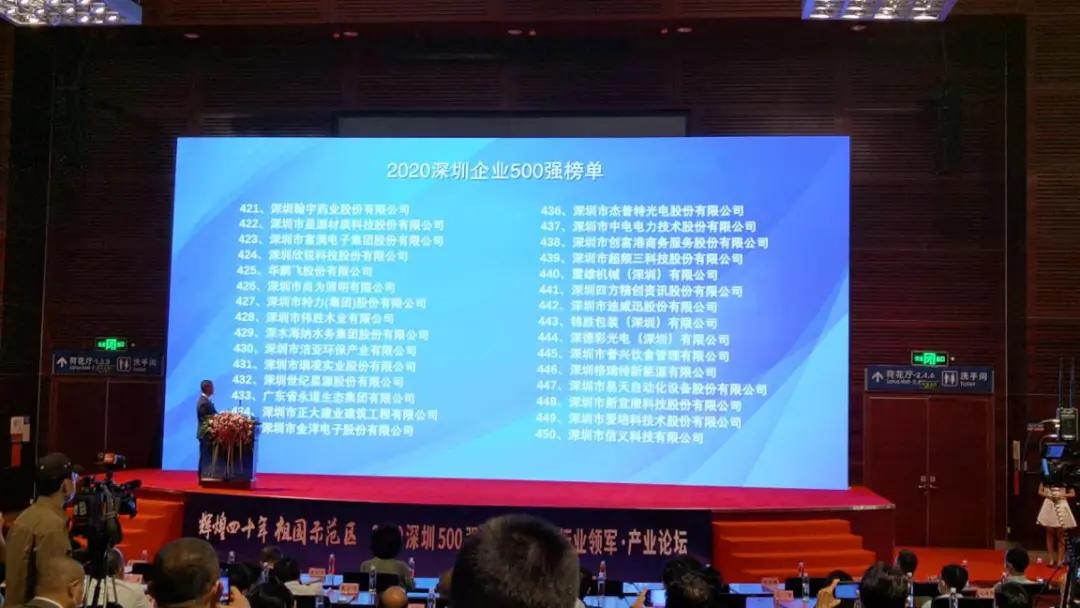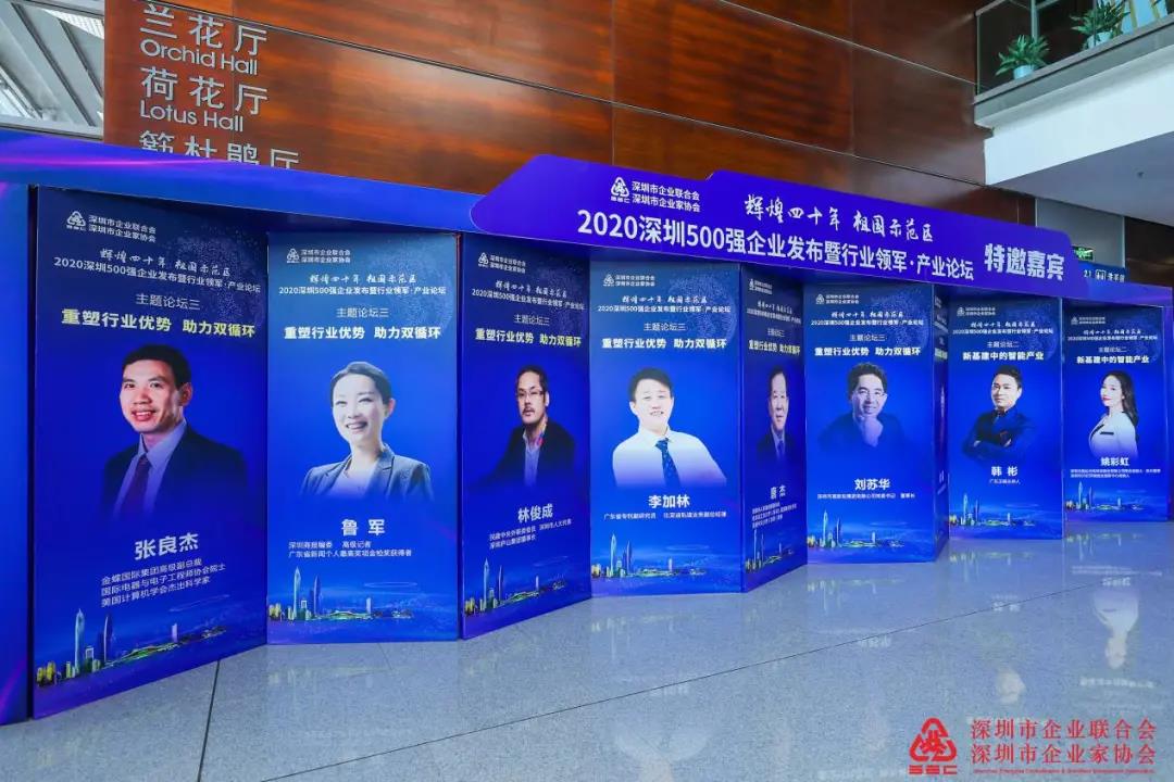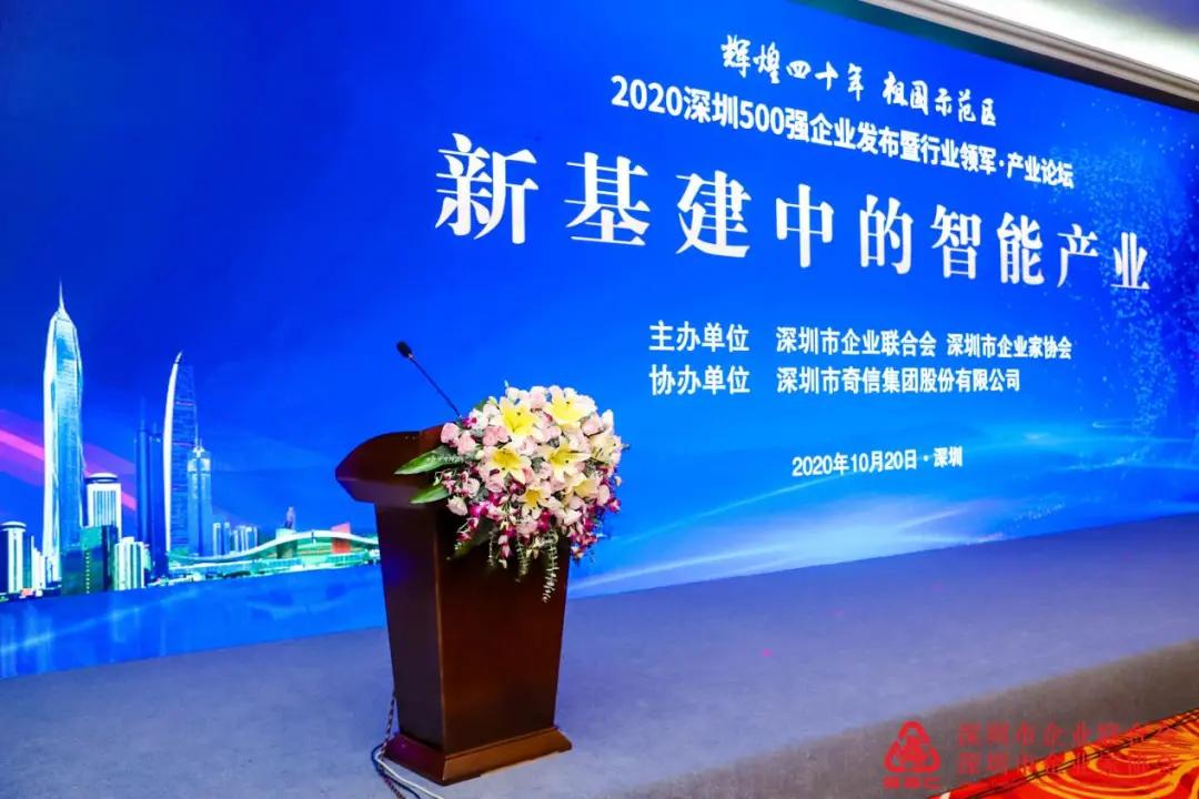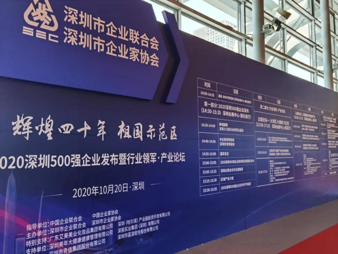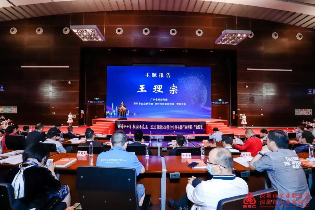 2020 年 10 月 20 日下午,由中国企业联合会、中国企业家协会指导、政府相关部门支持,深圳市企业联合会、深圳市企业家协会在深圳会展中心举办了“辉煌四十年、祖国示范区”2020 深圳 500 强企业发布暨行业领军产业论坛。