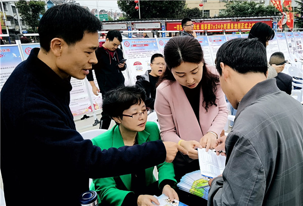 太湖县人社局长张文斌带领民生工程业务骨干发放宣传单、宣传手册、折页2000余份,发放民生工程宣传礼袋数百个,现场面对面解答群众关于城乡居民养老保险、就业创业促进、技能培训提升等民生工程有关政策咨询千余人次。
