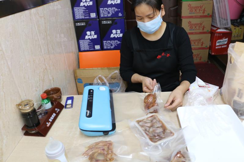 来温州做生意、旅游的人较多,有些顾客吃了后,很想再买回一些卤味分送给亲朋品尝品尝,自己也再好解解馋,但怕等回到家变质或味道不正了,只好放弃。陈芬了解了情况后,就买来了简易真空包装机,很好地解决了这个问题。确保了卤味三天内能保持原味,若放冰箱里可保存更长时间,想吃时,一解冻就行。