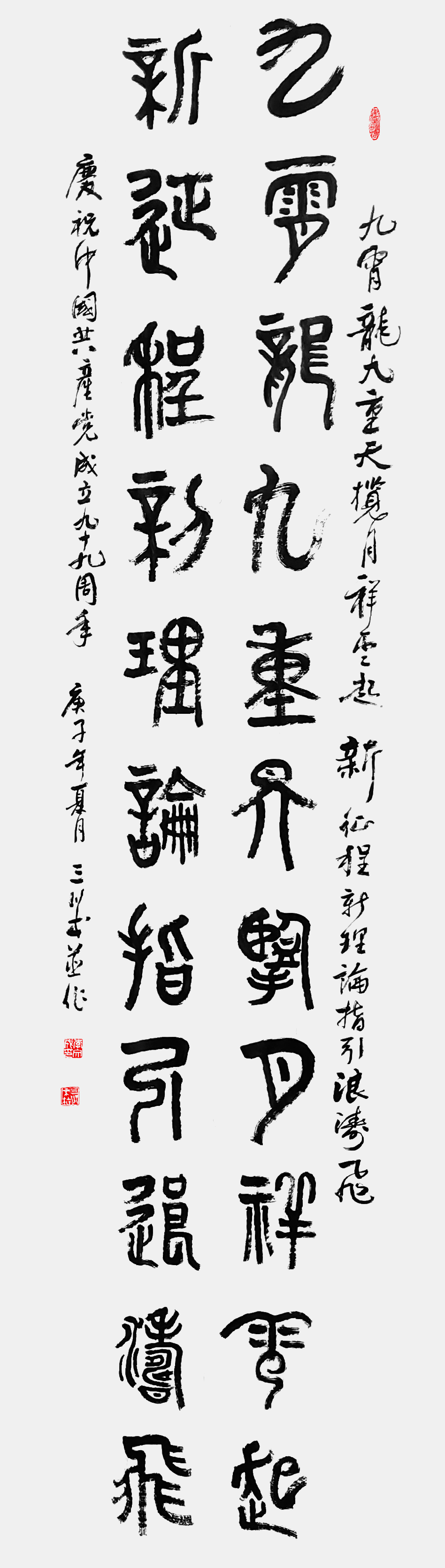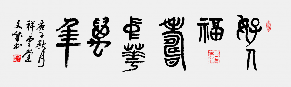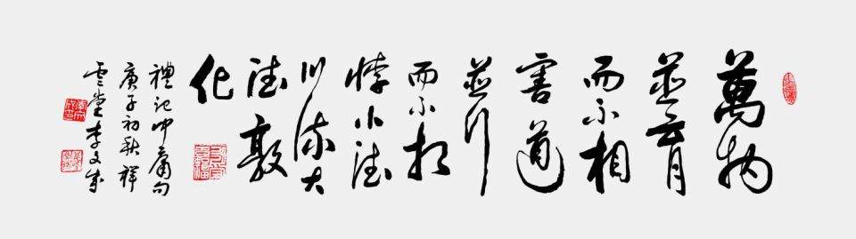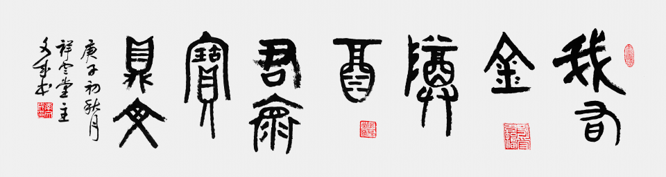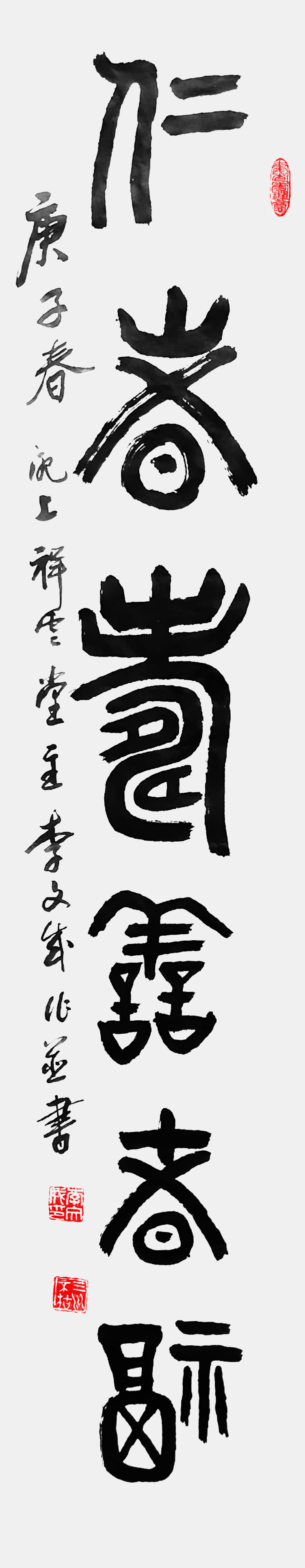 李先生的篆书兼习大篆的朴茂与小篆的严谨,有意识地兼取二者生动飞仪的姿态美,强调笔墨的书写性,所以他写出来的篆书作品很古典,却也很悦目,生动风格一目了然。古人作字以遂心应手为体验,李文成先生深度体验书法源本之质,所以完全剔除了当代篆书创作僵化于“描画”的流弊,通过刚柔相济,使劲自如的笔墨塑造,把篆书由“画”纠正为“写”,这是他的篆书不但可以视之为个人成就,也可以视之为公共文化成果的显要资质!