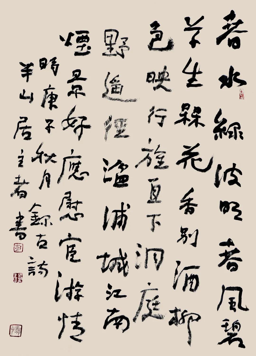 作品名称:八指头陀诗 作品释文: 春水绿波明,春风碧草生。 梅花香别酒,柳色映行旌。 直下洞庭野,遥经湓浦城。 江南烟景好,应慰宦游情。 作品尺寸:70x50cm