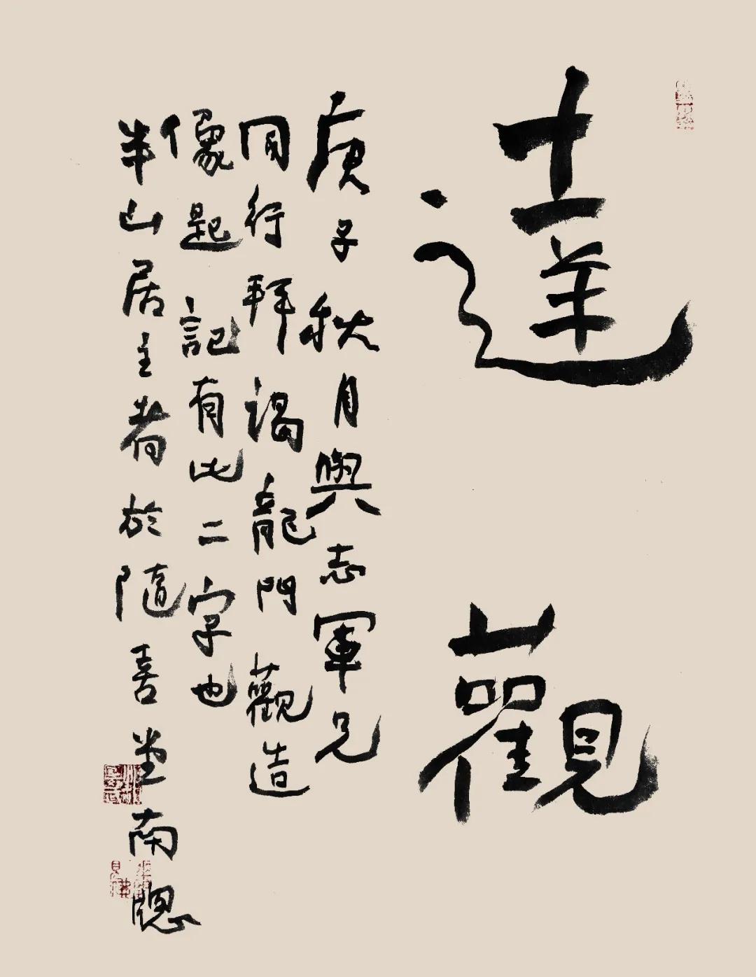 作品名称:达观 作品释文: 庚子秋月,与志军兄同行拜谒龙门, 观造像题记有此二字也。 作品尺寸:50x40cm