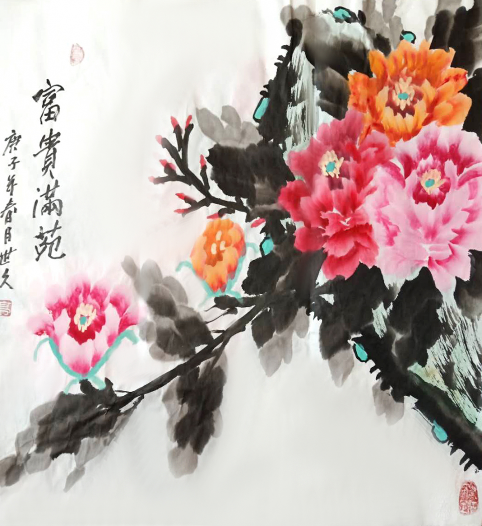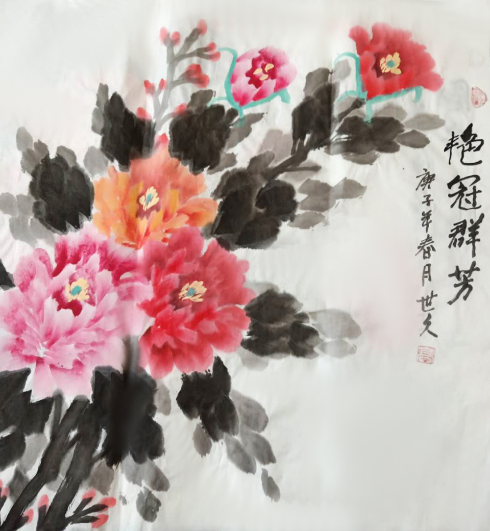 他的虾画与泼墨荷画同作一题,有骨画法与没骨画法相依相映,把虾的灵与荷的禅融为一体,虚实相生,动静烘托,不但有赏心悦目的观赏性,也有雅饰厅堂的文化装点效果,有这样一幅荷池龙虾挂在雅舍,可以让空间的文化品位立增数倍!久观耐品,文人画的文化气韵,总是扑面盈心,令人过目不忘记,蓬荜生辉,修身益心!这就是先生的画在专业圈大众审美圈口碑皆显不俗的重要原因。他的画可饰万家屏障,自是文化弘扬的立世功勋! 古今永传绘丹青,独树一帜开新篇。高先生画牡丹也有浓墨重彩绘华章的文人大格局,水墨五彩焕神,胭脂艳而不俗,花头层次分明,枝叶也见钢打铁铸。牡丹常见一枝望云天的空间图式,花寓龙腾,艳而不俗,丰姿多神,华夏昌盛!用画咏中华,先生最谙此道,所以独家塑造,贵在主旨高格!凡属大家,尽是这般丹青写高远的风范! 著名书画评论家 杨卫2020年11月6日