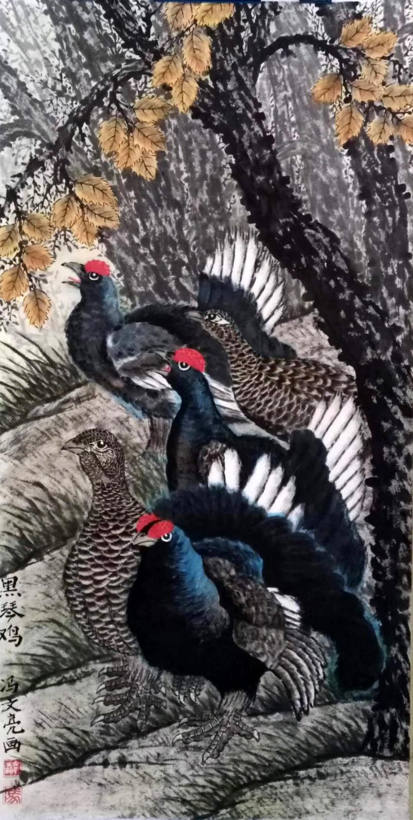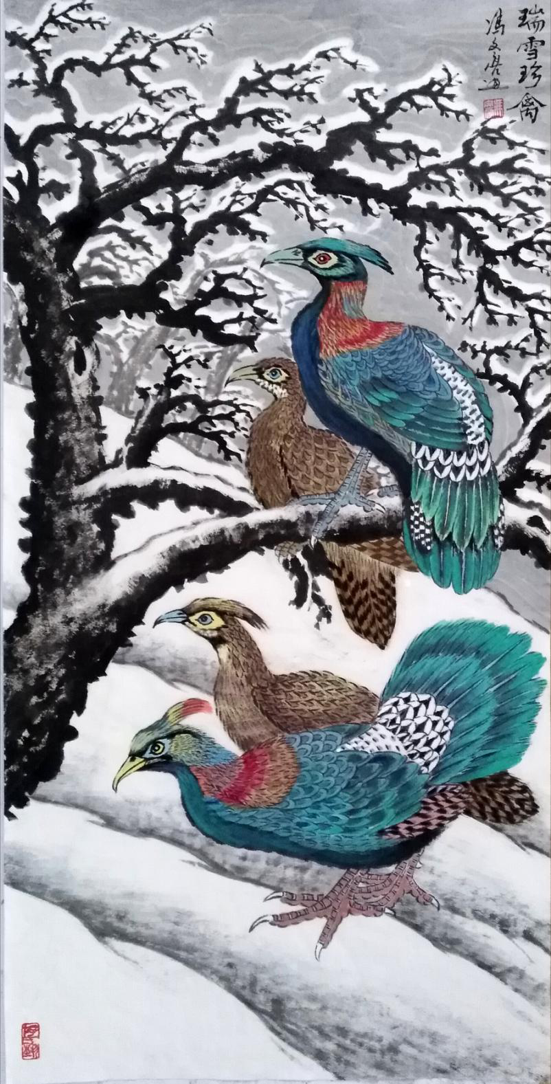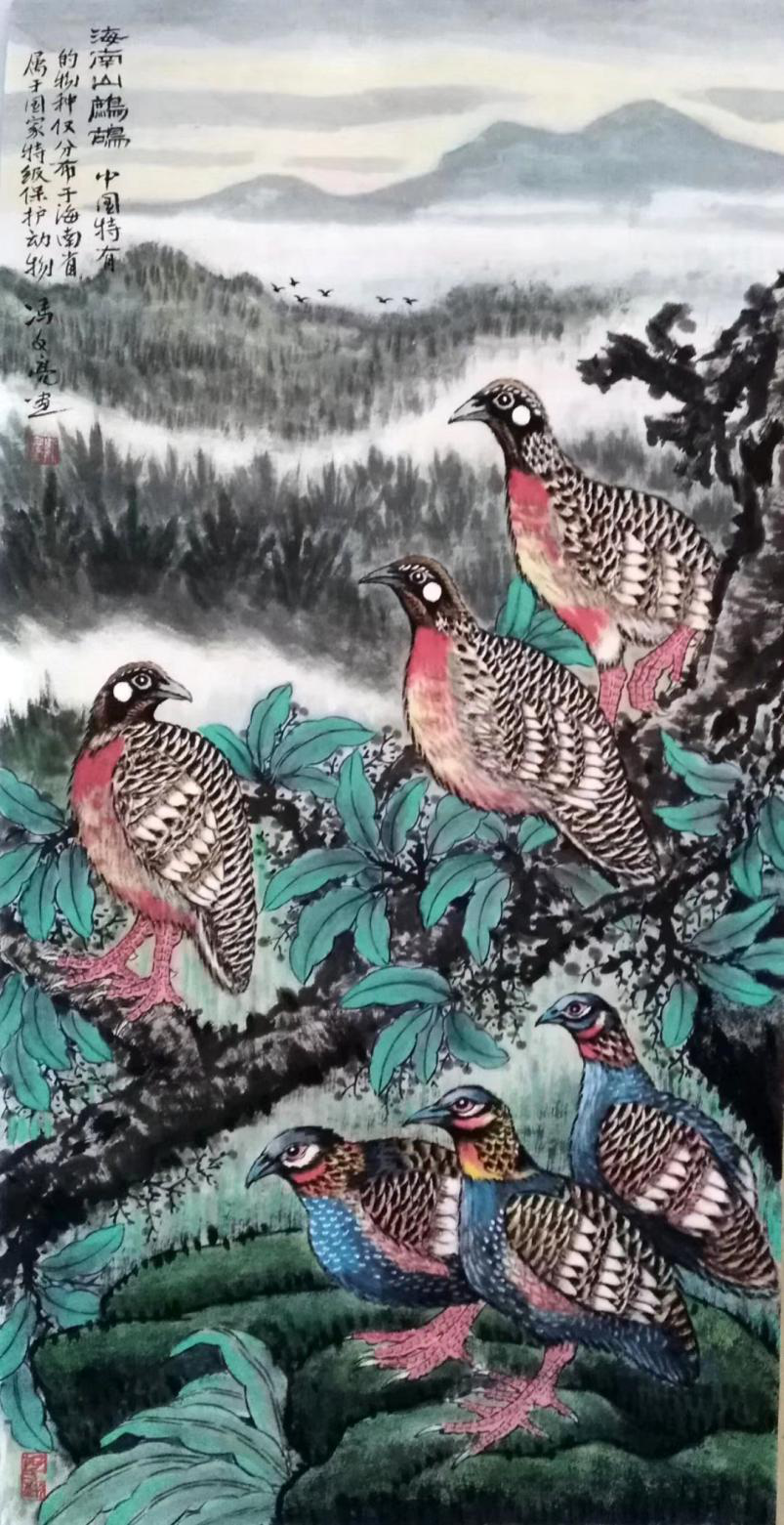 深沉厚重 蕴玉藏辉 ——冯文亮其人其画 冯文亮,1941年出生在大别山腹地河南省商城县偏僻的山村。自幼爱好书画,数十年笔耕不辍,创作了大量作品。1964年作品经省文联选送参加全国美展。1975年作品在河南省博物馆展出后,被文化部选送香港展出。以后数十年,作品多次参展参赛获奖,多幅作品发表于报刋,出版个人作品集三种。 冯文亮的作品题材广泛,艺术功底扎实,绘画能力全面,作品风格多样。人物,山水,花鸟动物,无所不画。他的珍稀野生动物系列,把动物与自然生态结合起来,将丰茂的植物与鸟兽共处。画面飽满,既磅礴大气,又不失精微。以弘扬尊重自然,亲和自然的情怀,谱写出颂扬自然,颂扬生命的赞歌!一百多幅野生动物作品,倡导了人与自然和谐共生的绿色发展理念。向人们发出了肺腑的呼唤与呐喊一一保护环境!保护野生动物!实现人类与自然和谐共生!