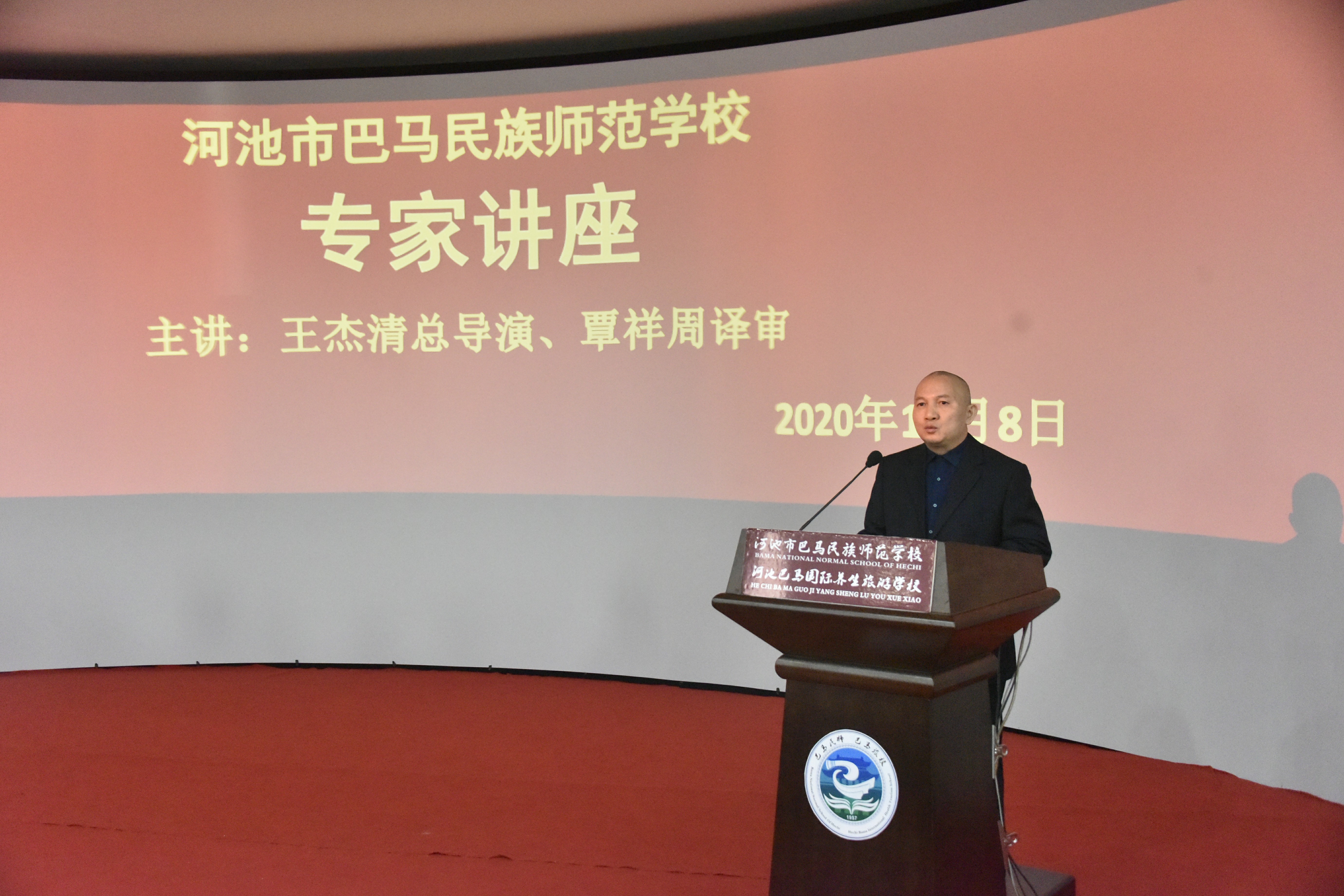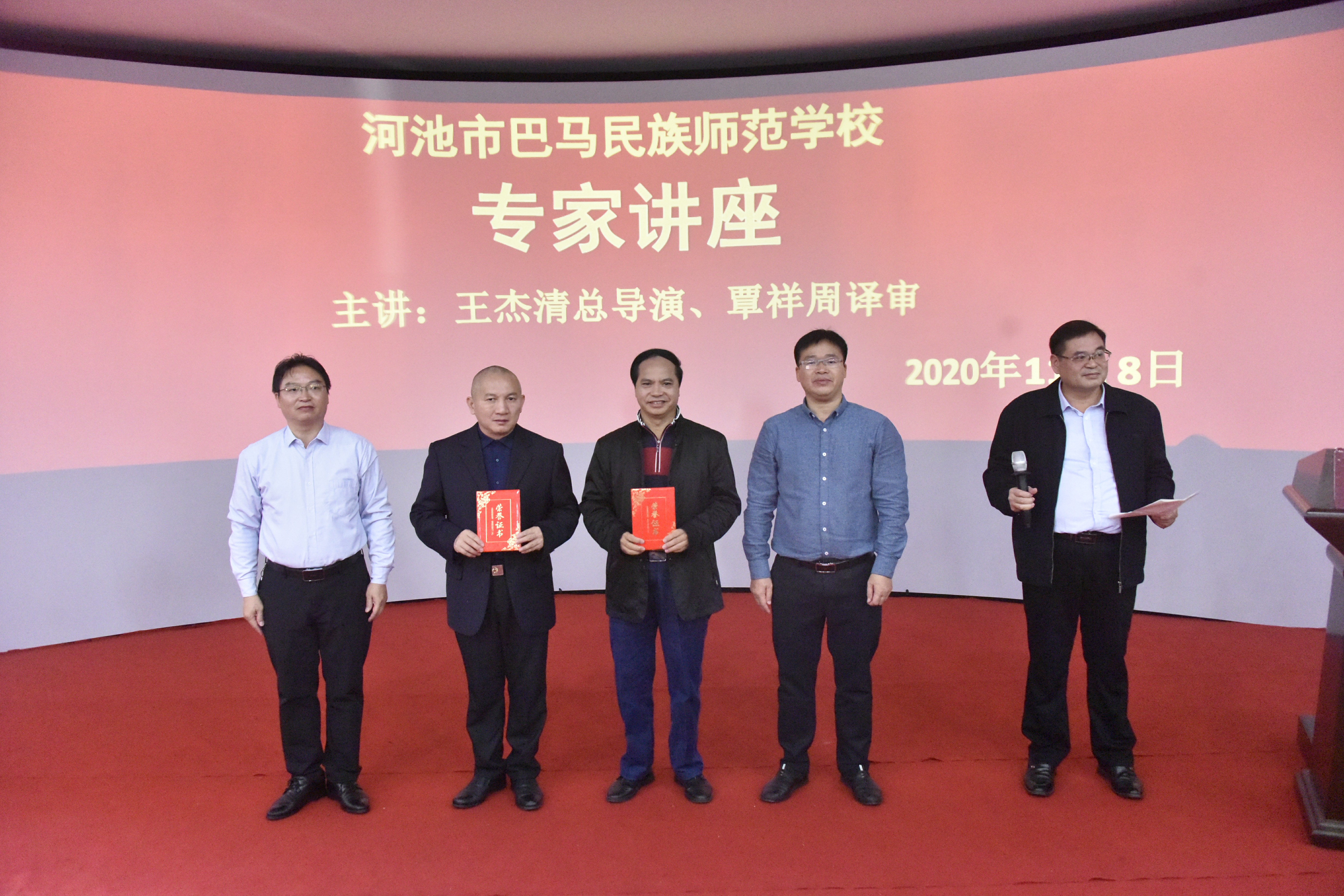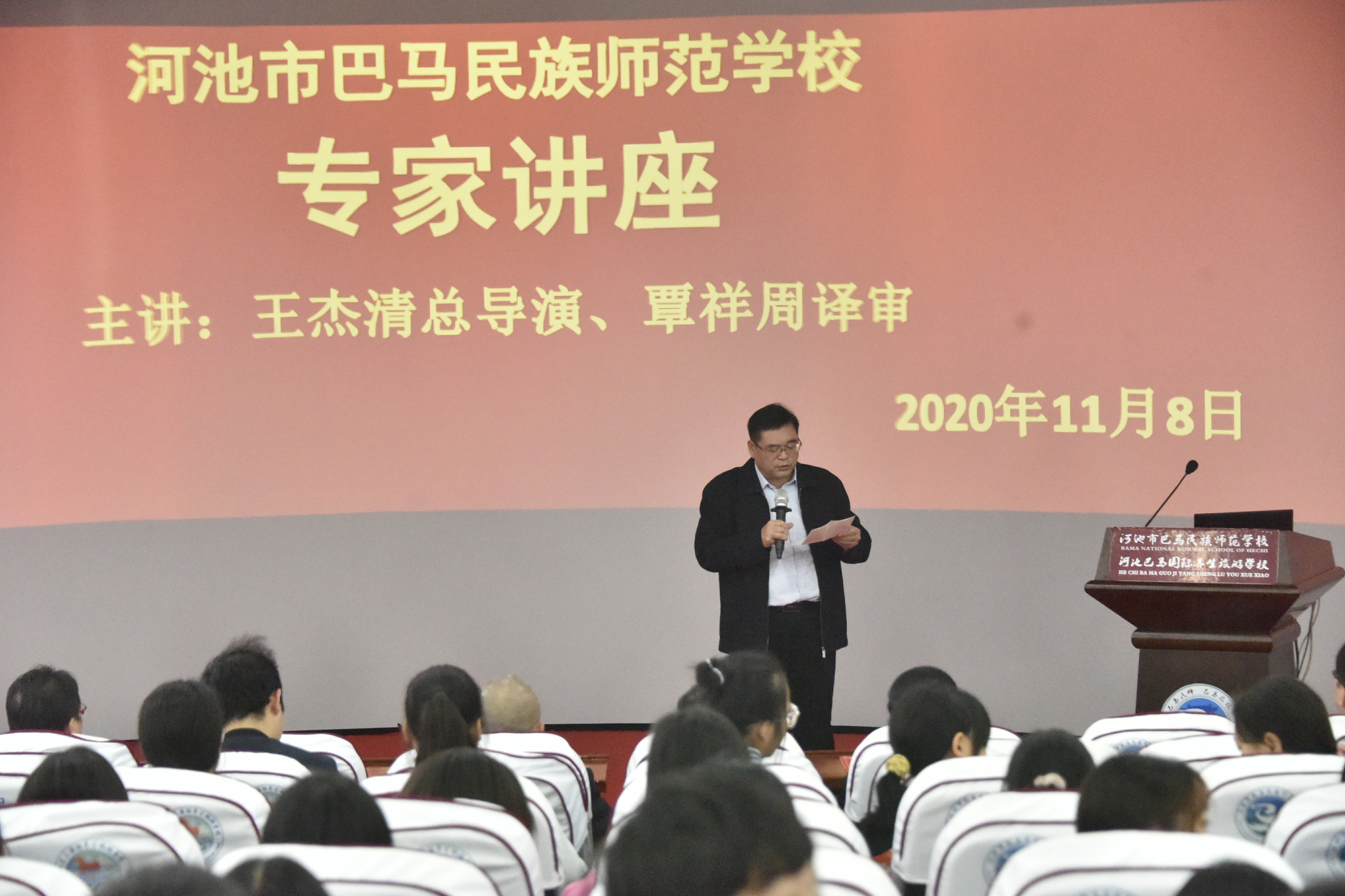 为加快学校民族文化建设步伐,突出办学的民族性,11月8日上午,河池市巴马民族师范学校邀请王杰清和覃祥周两位民族专家,作“壮族文化传承”主题讲座。讲座由学校党委书记唐旭国主持,副校长黄德英、蓝必亮,2020级幼师音乐班、2020级幼师舞蹈班、2020级幼师语言班、学生文艺队、铜鼓社团成员等领导嘉宾及师生共两百多人到场聆听讲座。 ▲讲座现场 ▲唐旭国书记主持讲座王杰清、覃祥周两位专家在民族文化研究和实践方面均有很高的成就,黄德英副校长和蓝必亮副校长为他们颁发邀请聘书,特邀他们到校讲学。 ▲颁发邀请聘书首先,王杰清总导演,用壮话导入,结合创办中国壮语春晚的经验和自身经历,陈述了壮语春晚对弘扬民族精神、促进爱国教育以及边疆和谐建设的意义和价值,壮语春晚作为广西特有的民族艺术品牌,促进了壮族人民的价值认同、文化自信和自我归属感,成为激励壮族以及广西各族人民奋发向上的内在力量,成为维系广西和各界、各行业力量团结和睦的精神纽带。他还引导学生学会感恩,培养家国情怀,正确树立对家庭社会、国家民族的责任感和担当精神。此外,王杰清根据多年工作经验,向学生们传授了文章写作、词曲创作的一些方法和技巧。 ▲王杰清总导演作讲座接着,覃祥周作题为《壮族山歌赏析》的讲座。他说山歌改变了他的情绪和命运,在观看东巴凤和云南的山歌节目表演视频后,其助理韦淑英进行现场教学,教大家唱山歌,一首山歌,先用壮语再用汉语双语教学,把讲座推向了高潮。 ▲覃祥周译审作讲座 ▲韦淑英女士现场教唱山歌 ▲现场唱山歌王杰清先生是中国(广西)壮语春晚创办人、组委会主任、总导演;中国壮乡三月三校园民族文化艺术节创办人、总导演;中国网上电视台副总长;广西电视台《绿色广西》栏目总编导;广西民族文化产业发展研究会副会长兼秘书长。 覃祥周先生是广西三月三杂志社总编、译审(正教授级),中央民族大学壮侗学研究所研究员,广西民间文艺家协会副主席、山歌专业委员会主任,广西民族大学文学院特聘教授,国家法官学院广西分院兼职教授,广西山歌学会原会长。 讲座结束后,师生们纷纷表示收获满满,不仅对民族文化有了更进一步的了解,更体会到了壮族文化的魅力,提高了民族自信心和民族自豪感。 ▲合影最后,两位专家到学校操场观看学生文艺队表演并进行指导,计划把具有民族特色的节目推向壮语春晚舞台,向世界展示巴马民族师范学校的文化艺术魅力。(通讯员:黄慧晶) |