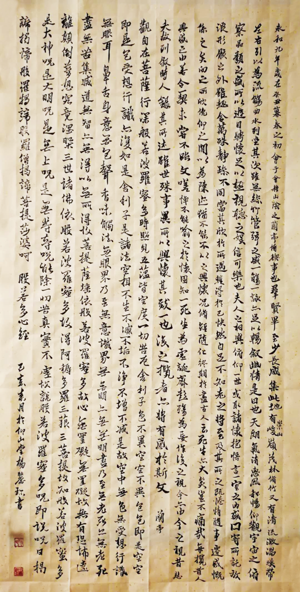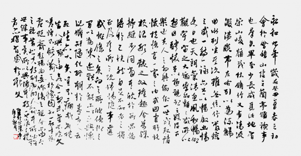她的行草是以晋代文人书法法帖而建立的正宗体系。临写兰亭序不但精心追师冯承素本,也对定武本付诸努力,从前者汲取飞仪多姿的笔墨变化精神,从后者吸收圆融和合的意象品质。两本参照,互相补益,这就不仅仅是练书法的单纯意义,还有书法研究的更上一层楼!带着研究书法文化的心念,做书法修炼,必定是站高瞻远,可以让书法晋升为书道,技高一筹。行草作品写得伸缩得体,不激不厉,颇得晋代文人书法的天质自然!