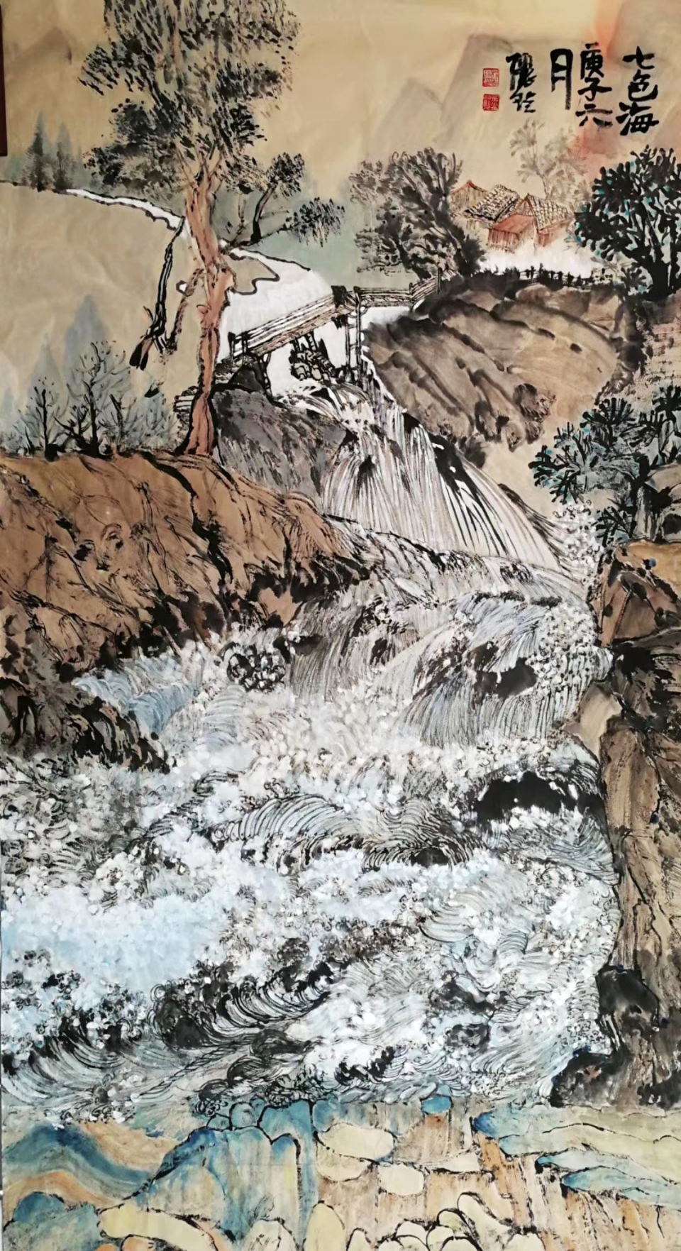 博涉碑帖,书性超群。杨女士书法写得好,丹青也见妙作。用精湛细腻的笔墨画山水,以笔立骨,色墨显神,淡赋青绿绘雅质,色不碍墨,墨不碍色,写画如诗:一天清淑气,万里碧榆风。有诗词入画的内涵,也有以书入画的表现,笔墨正宗,气韵生动。所以她可以通谙书画同源的机理,成为书画艺术的贤家! 著名书画评论家 刘振明 2020年11月11日写
