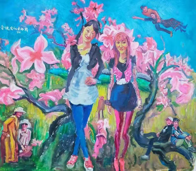 以前的画,可能是在为功名而忙碌。当下的画,必然是为奏响人生的乐章而努力!所以,看刘亚明的画必然会感觉统摄人心,有震撼!他在画里表现着幸福、表现着闲逸,没有一线悲苦的模样,所有的形象都近乎是洒脱而轻松的美感! 如果艺术家心里没有阳光,绝然不会把写实油画创作得如此灿烂。饱满的暖色调是渲染的主旋律,和谐的空间结构总是令人赏心悦目。看这样的画,如果没有人提醒,你不会认为这是一位疾患中风者的作品,因为画里的天真、浪漫、积极、温暖总是会让人意想到,这应该是一个充分享受着生活惬意者的佳作!