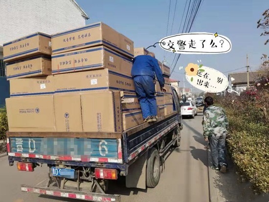 11月12日,在s698县道行驶的一辆货车上出现惊险一幕,一男子像“蜘蛛侠”一样趴在满载货物的货车上,随着车辆颠簸左摇右摆,幸被巡逻民警发现,及时制止了这一危险行为。 11时30分左右,长治市公安局交警支队七大队民警巡逻至s698县道店上村附近时,发现一辆满载货物行驶中的轻型货车上有人影晃动,民警赶紧跟上前仔细观察,原来一中年男子趴在货物上,随车来回摇晃十分危险。民警立即通过喊话器指挥该车辆停车接受检查,然而接下来一幕着实让民警哭笑不得。