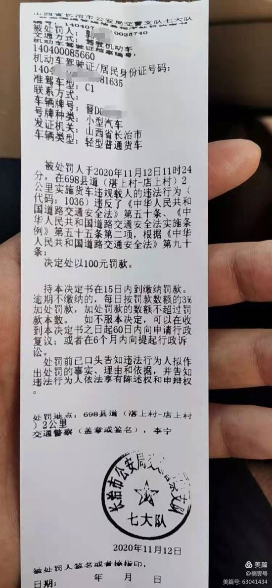 在车辆停靠后,民警示意驾驶人及货物上的男子下车接受检查,没想到,后车厢货物上的男子还在企图躲避检查向车后方挪动,驾驶人郭某山看到无法隐瞒,突然演技爆棚,装作毫不知情的样子,数次对货物上的男子大吼道:“你怎么坐后边了。”而货物上的男子只是一脸懵圈地看着驾驶人。这波表演令在场民警都是哭笑不得,随即,民警对他们进行了批评教育,并依照相关法规对其进行了处罚。而驾驶人及乘车人经过执勤民警的悉心教育,均深刻认识到自己的错误,并保证今后一定遵守交通法规,文明出行。(申楠) |