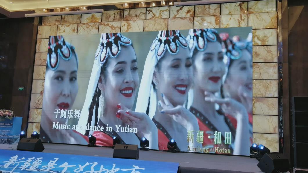 推介会现场。 推介活动通过现场独具特色的主题布展、精彩纷呈的专题推介和热情洋溢的民族歌舞等多种形式,带领观众提前感受新疆冬季旅游的独特魅力,激发出更多游客赴疆观光旅游的热情。