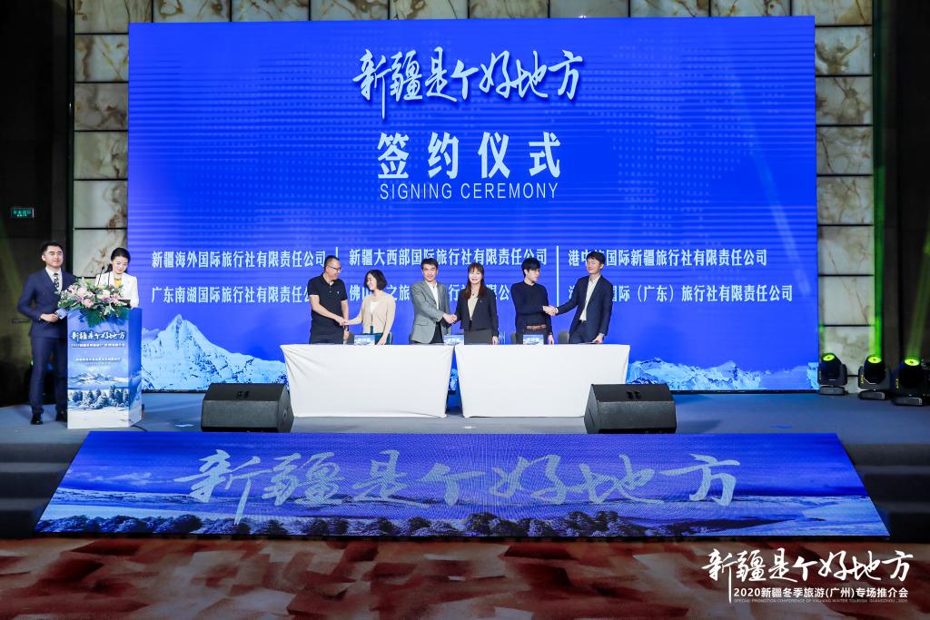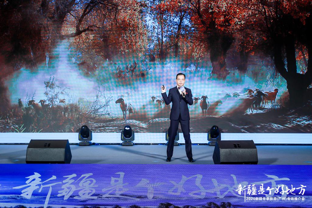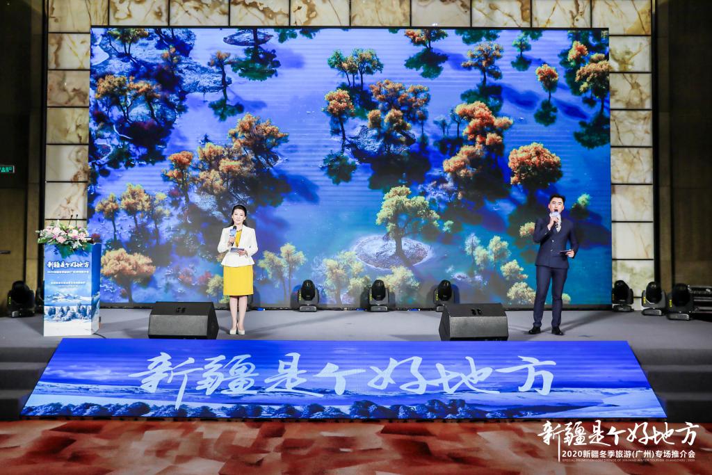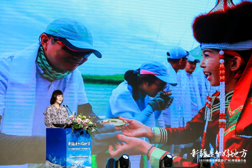 " 朋友们,好客的新疆各族人民,热情欢迎您来打卡,我们在新疆等您!"11 月 13 日,由新疆维吾尔自治区文化和旅游厅举办的 " 新疆是个好地方 "2020 新疆冬季旅游推介活动走进羊城广州,向广东游客发出热情邀请。