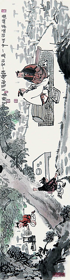 同时,绘画风格上也要在深入地学习传统之后做到面目独具、自成门户,找到自己绘画的着力点。人物画的特点在于既坚守写生造型,又要寻求笔墨表现的突破;既要捕捉真实人物的生动,又要谋求笔墨的灵动和表情的传神,诗意入丹青;既要让绘画雅俗共赏,又须潜心地营造绘事的人性高度与独特风貌。中国绘画的神采之妙在于陶冶胸中造化,吐露笔端生活。写意人物难,突破更难。不求知音,意趣随缘,六十甲子,唯希冀偶于笔墨得汉唐风骨之妙。 绘事一途,甘苦自知,需要十二分的投入和日积月累的才识心得,倾注毕生心血,方可论及二三。笔墨之间,耕耘数十载略有所悟,以求情之所触直指人心。作品优劣与否,实乃性情所致,不敢太多奢望。心安即是归处。 丙申岁末初雪后 写于古莲花池内保定画院汉韵堂