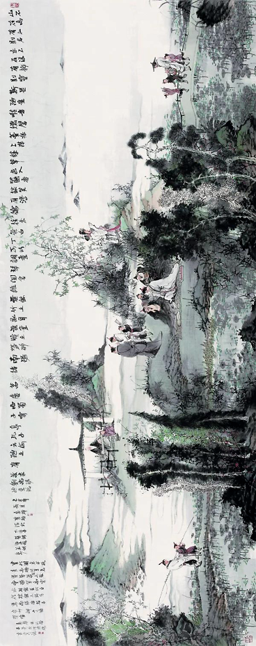 遥知湖上一樽酒,能忆天涯万里人 简淡,是一种艺术品格,它讲求形式的简约和素淡。绚烂,也是一种艺术品格,它展示文采的华美和亮丽。 耳顺之年的袁辉先生,有意兼而取之。他在具象而雄浑的燕赵风骨与个人的叙事性之间确立绘画样式的切人点,既讲究平淡简远的韵致,亦追求猗丽而壮阔的气象。他希望把两种艺术品格紧紧地揉合、交织,成为自己的心像,继而和生于斯长于斯的古城保定结合在一起,创造别具一格的审美境界和赏心悦目的视觉效果。