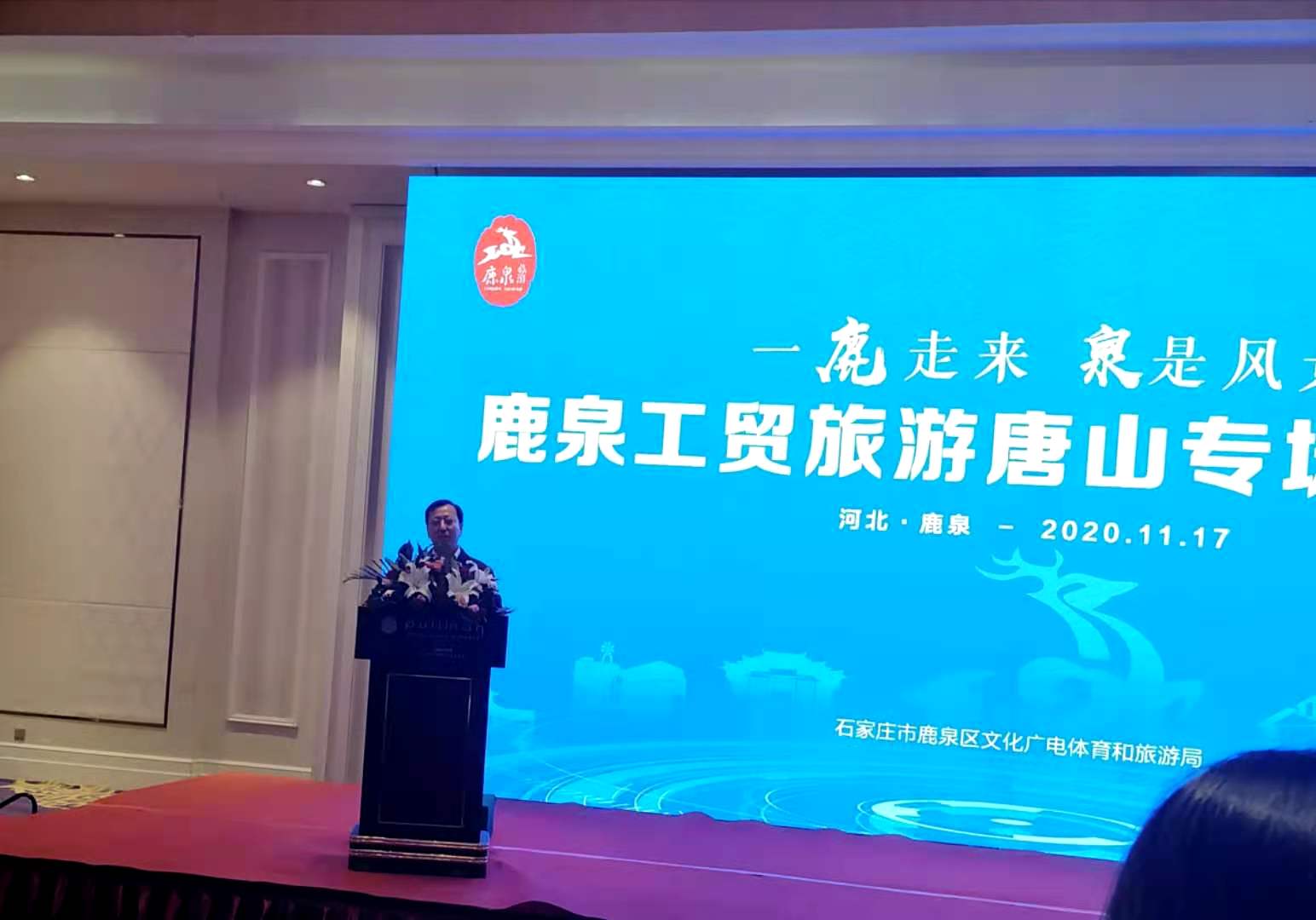 2020年11月17日上午,“一鹿走来 泉是风景”——2020鹿泉工贸旅游(唐山专场)推介会在唐山市新华联铂尔曼大酒店举办。唐山市文化广电和旅游局副局长陈福利、石家庄市鹿泉区文化广电体育和旅游局副局长刘鹏等领导,及20多家旅行社和新闻媒体单位参加了本次推介会。